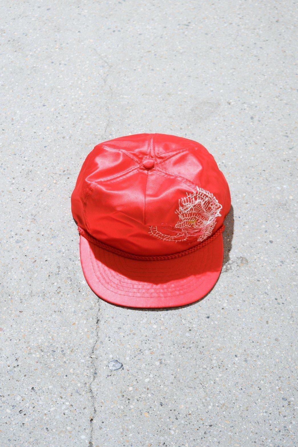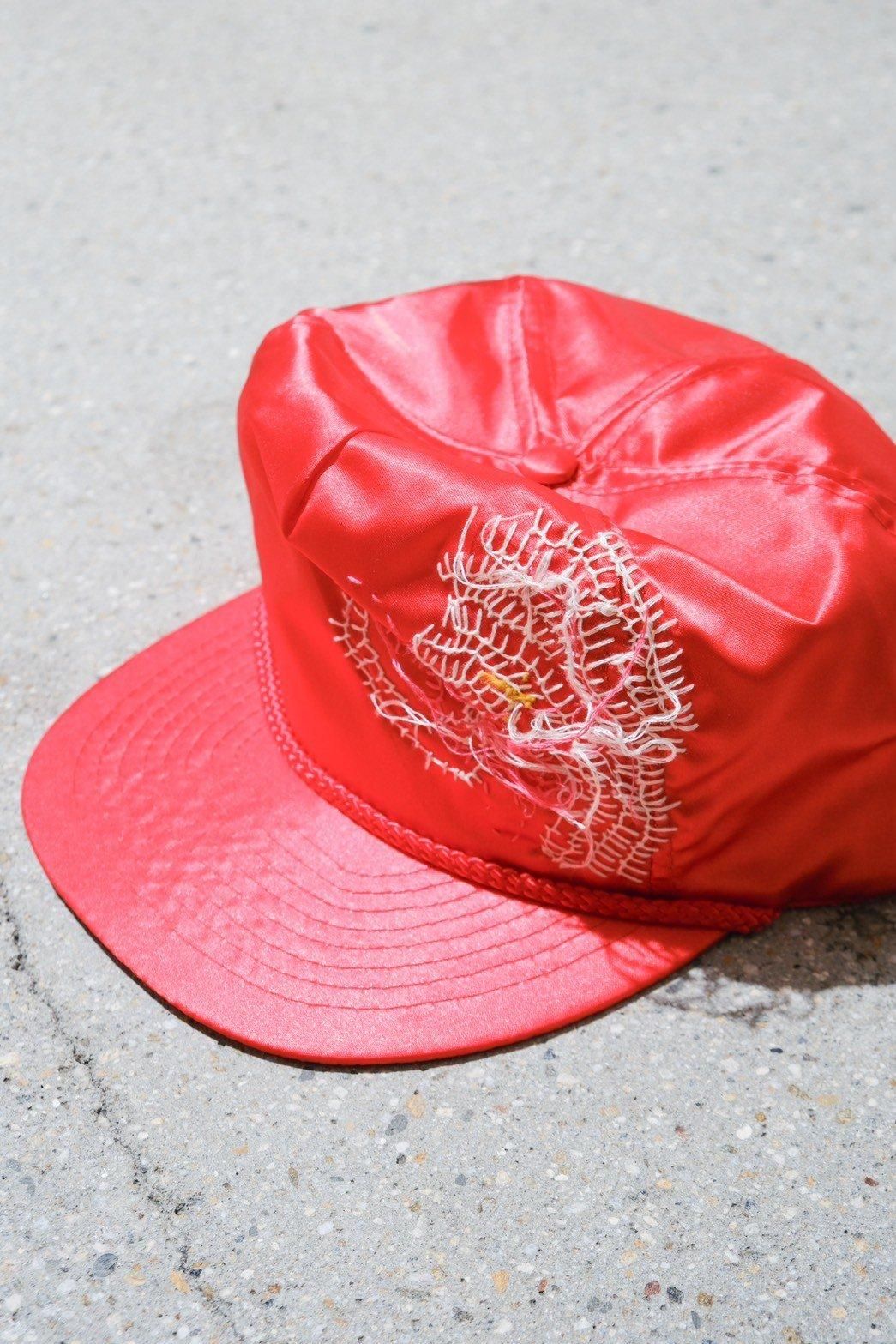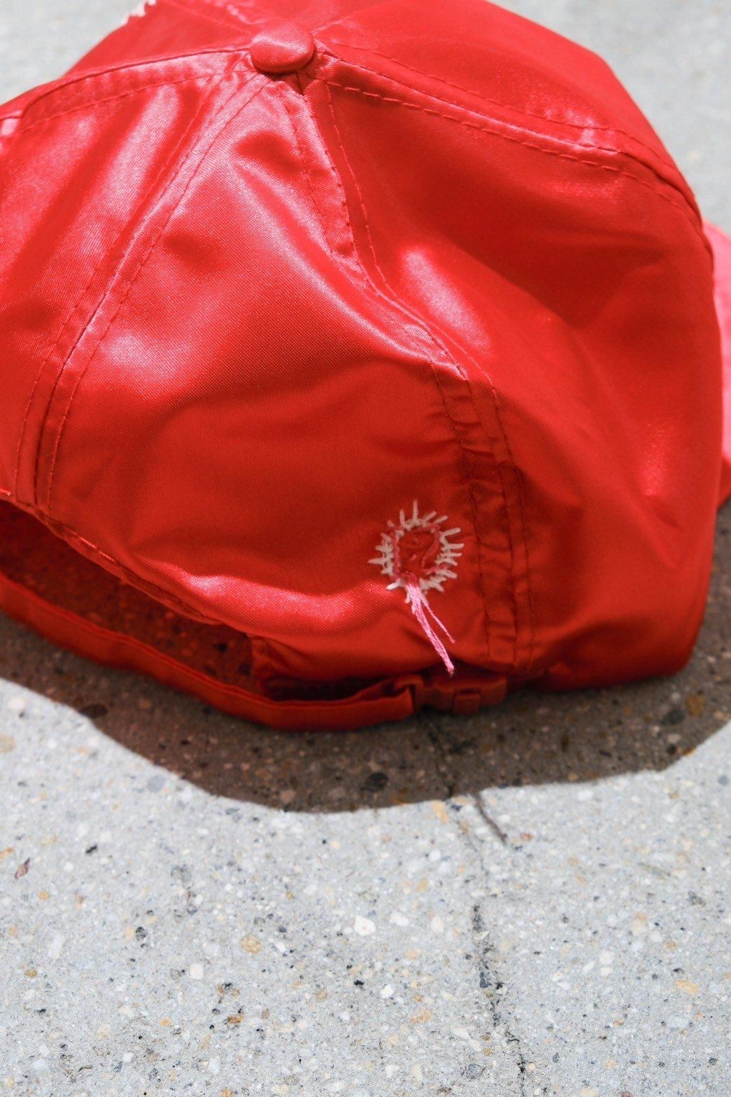 ナイロン素材のキャップのフロント部分に、モチーフは決めずにアドリブでハンドステッチを施しカスタム。左後ろには“IZ”の文字も小さく刺繍されています。