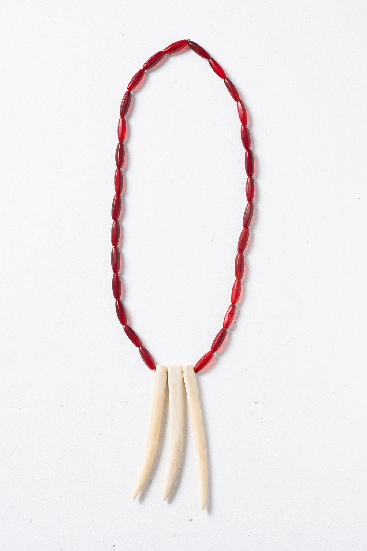 Sha-Leがアンティークビーズと象の牙を組み合わせを立案し、カメルーンのアーティストが制作した逸品。
