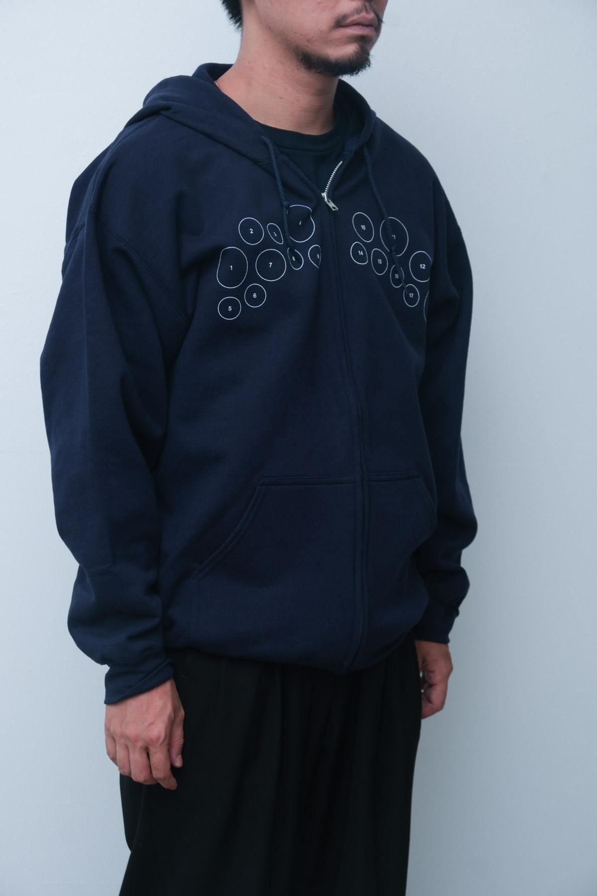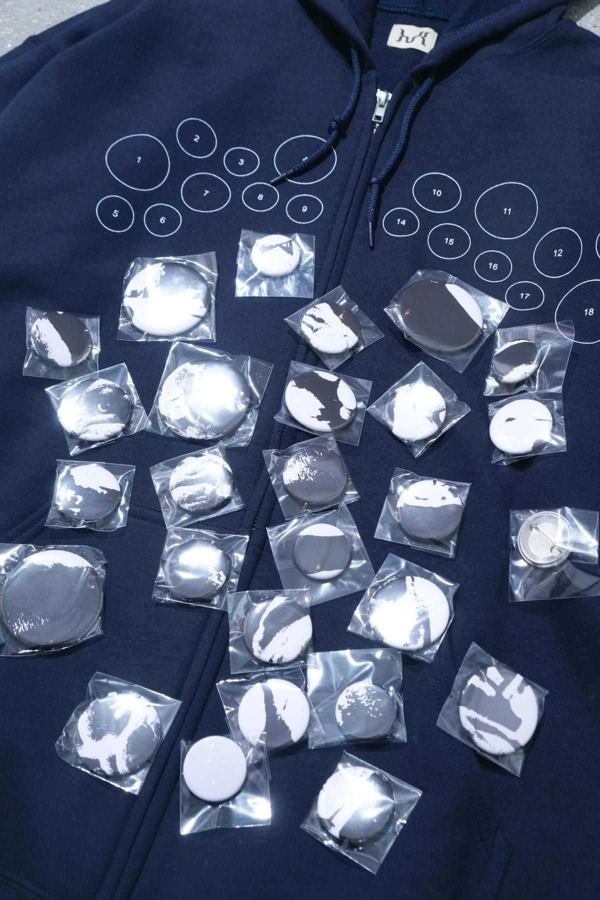 カレッジロゴがプリントされた缶バッジが付属しており、ベースとなる裏起毛のジップアップパーカーに取り付けることでロゴが浮かび上がるという、ユーモア溢れる逸品。缶バッジを付けなくても秀逸なプリントで、その日の気分で様々な表情に変化させることができます。