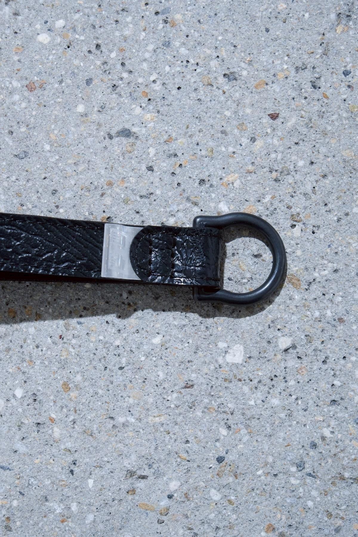 《THISWAY》新境地とも言える特別なシリーズ“Lux Series”。リアルなシボ柄のVibramラバーに、日本最古の老舗鹿革タンナーによるディアスキンを組み合わせたこのシリーズは、これまで展開してきた“TOY感”とは真逆のアプローチで制作。こちらのハンドストラップは表にVibramラバー、裏(肌に接する面)にディアスキンを使用。《THISWAY》らしい異素材を巧みに調和させた仕上がりとなっています。