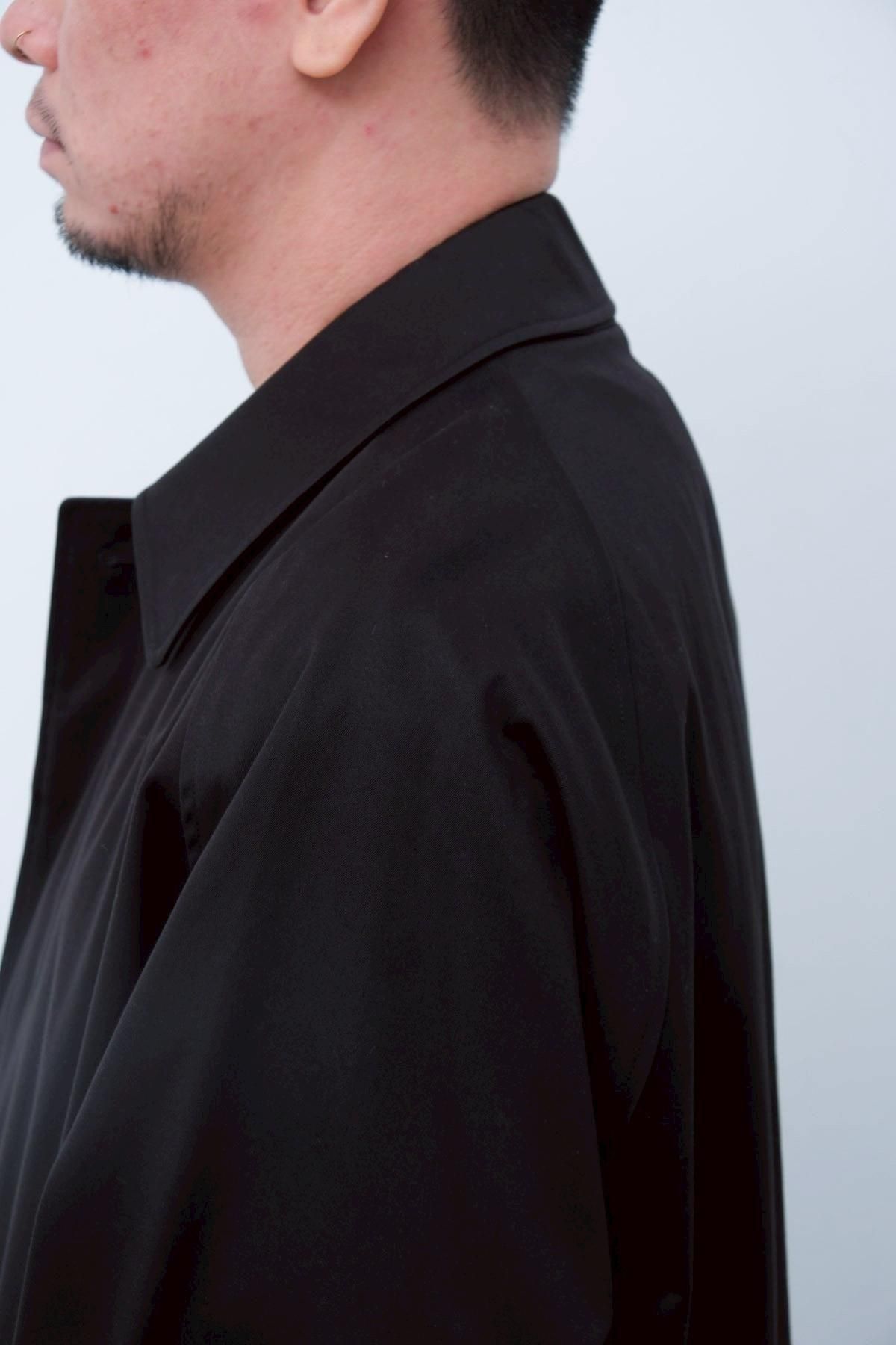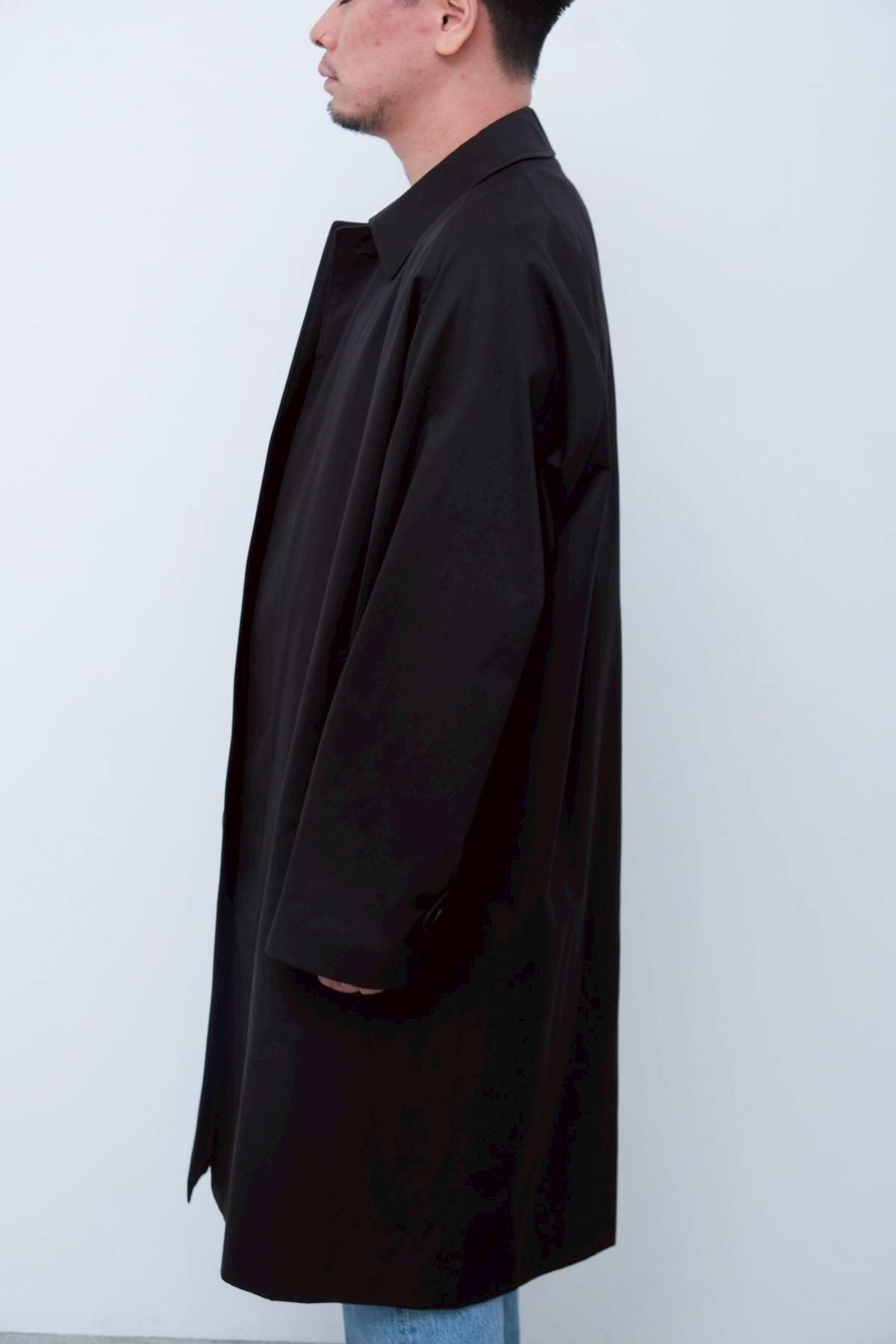 アミニマルかつ美しいデザインのバルマカーンコート。上質な原料を使用したコットンギャバジンはナチュラルな光沢があり、とても品のある表情に。ゆったりとしたシルエットに加え、裏地には滑りの良いレーヨンコットン生地を配しており、ジャケットやニットなどとのレイヤードもノンストレスです。