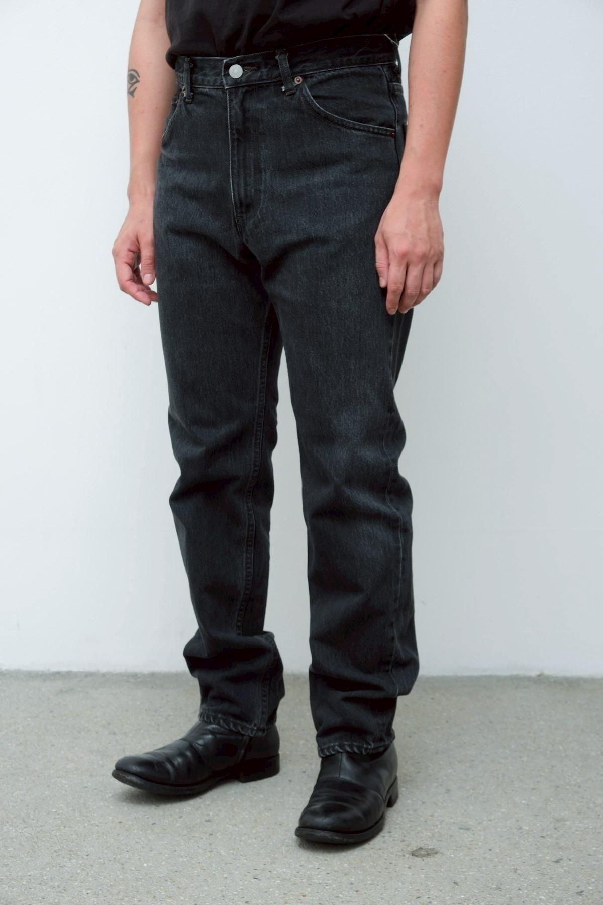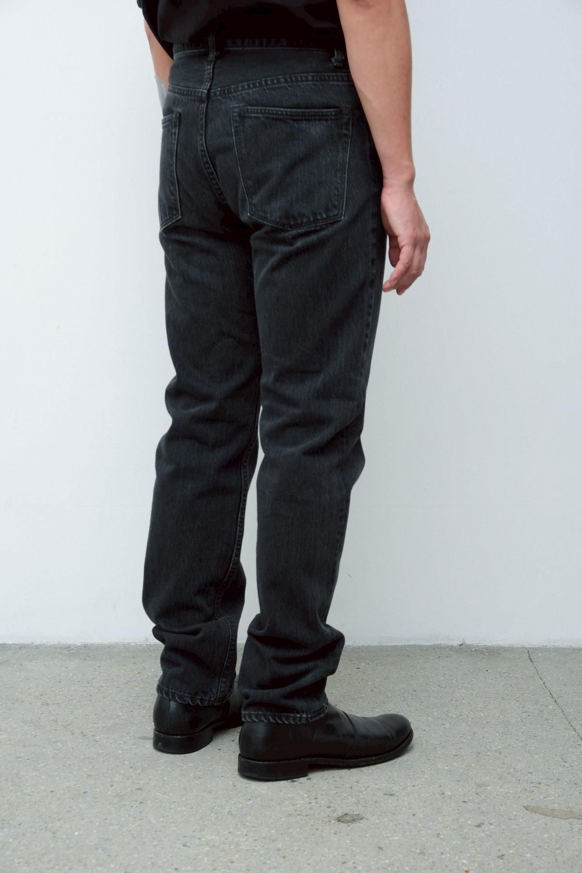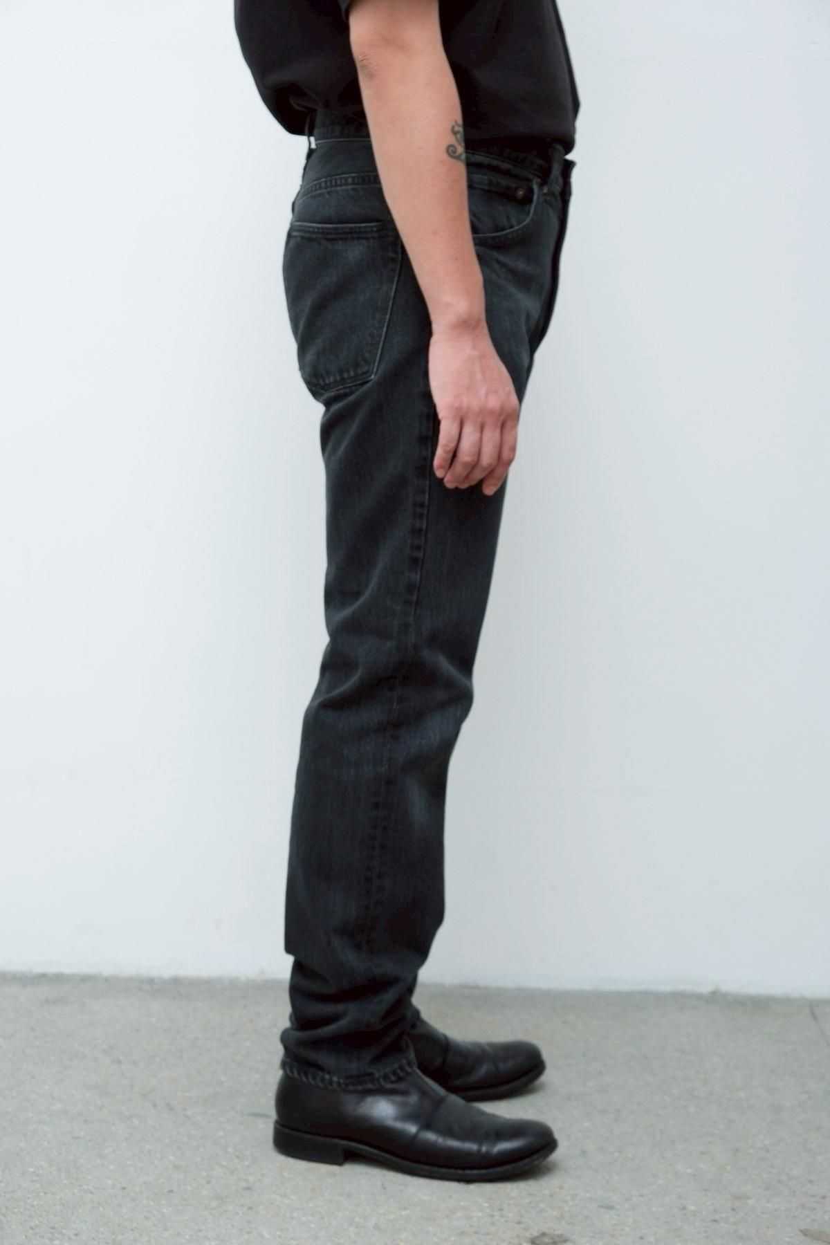 ブラックデニム生地を使用した、定番の5ポケットパンツ。ワタリを広めの設定したワイドシルエット。11ozのデニム生地なので、通年着用いただけます。