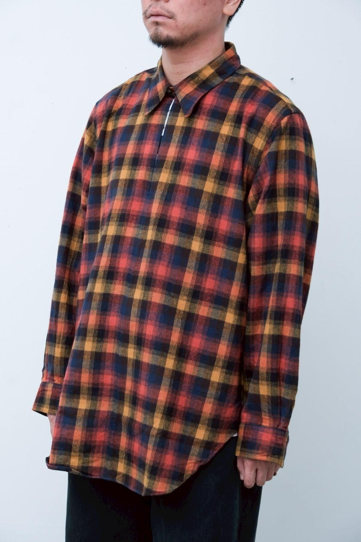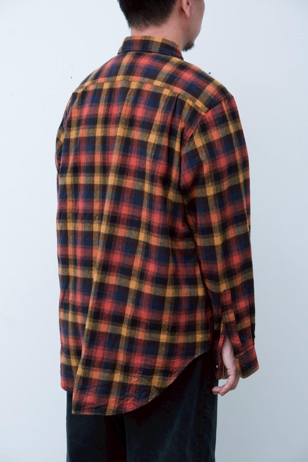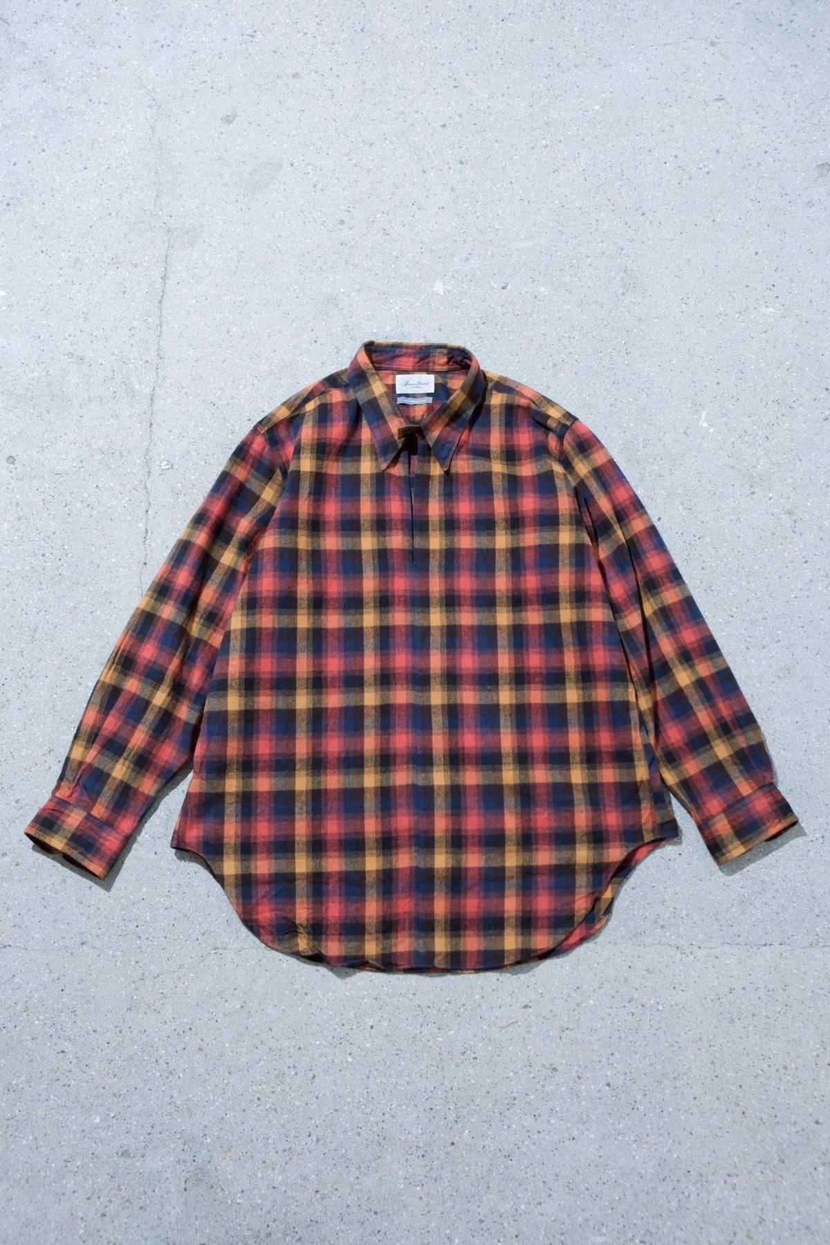 IMA:ZINE全スタッフが大好きなシャツブランド《Marvine Pontiak Shirt Makers》への今シーズンの別注は、誰もが一度は手にしたことのあるチェックシャツに着目しました。深めに入ったスリットが絶妙なヌケ感を醸し出す《Marvine Pontiak Shirt Makers》の定番、スキッパーシャツをベースに、今季展開されているオープンカラーシャツのオンブレチェック生地を使用。グラデーションしているかのようなイエローとレッドのコンビネーションがスタイルを彩ります。縦縞と横縞の交差によってできるチェック柄のように、《Marvine Pontiak Shirt Makers》とIMA:ZINEが交わることでできた最高峰のカジュアルシャツ。コンフォートフィットな1サイズ展開です。