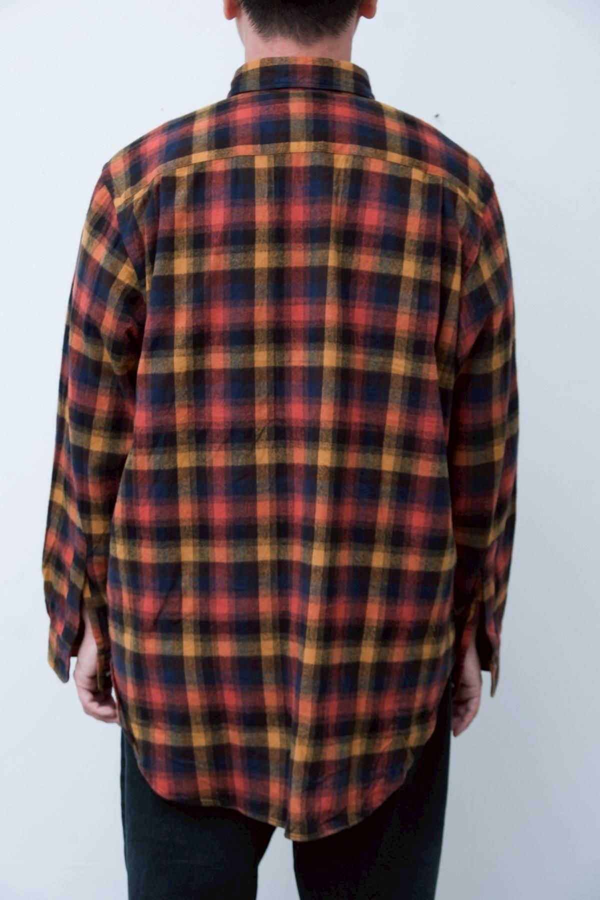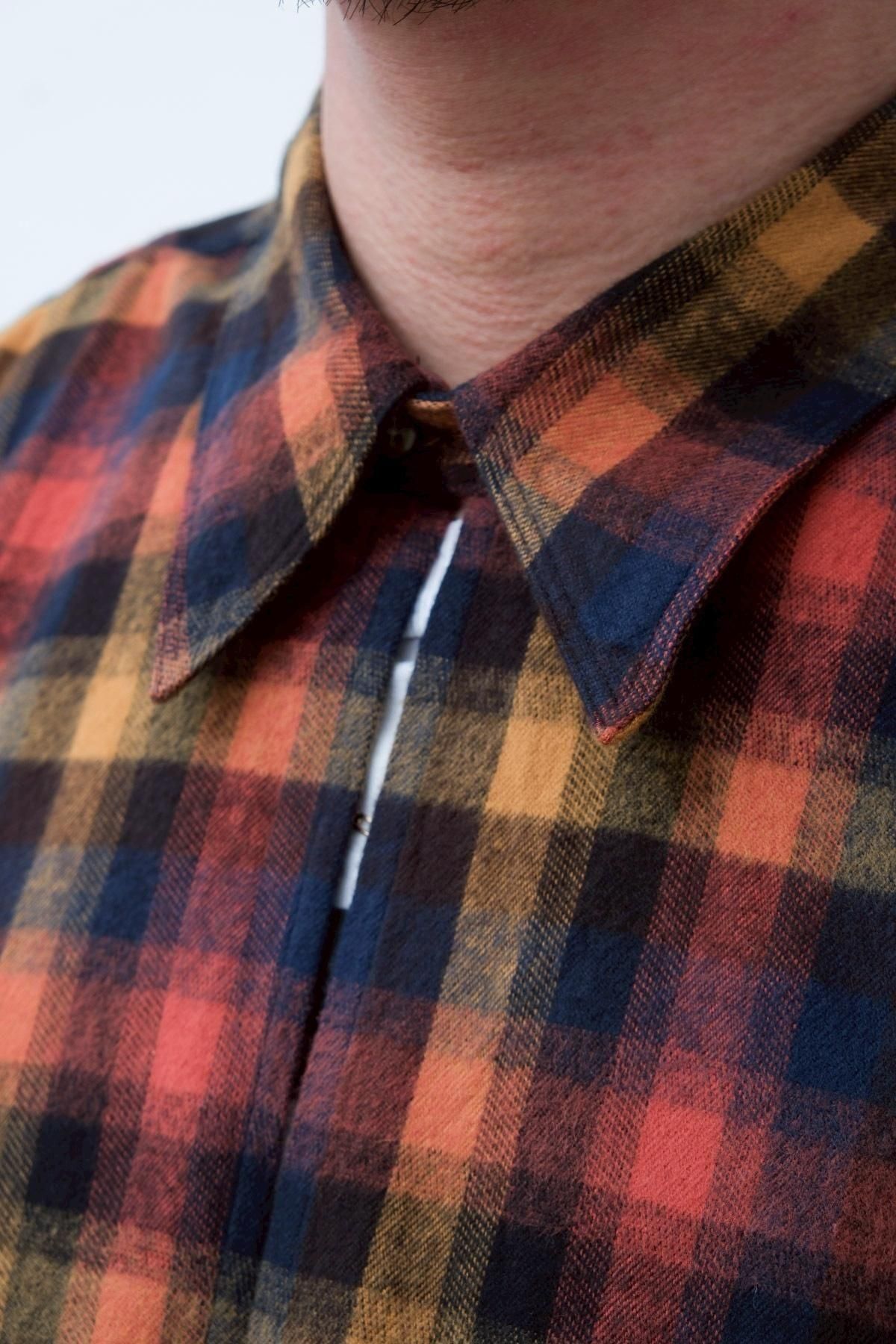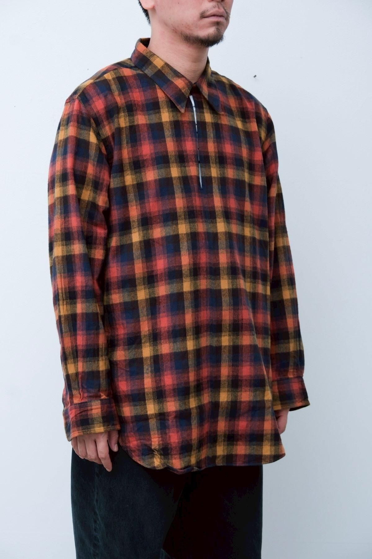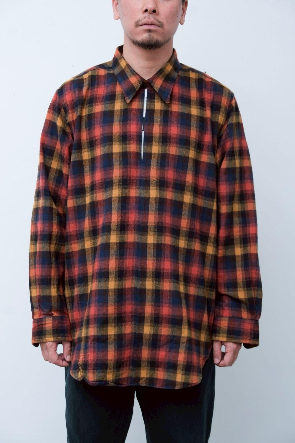 IMA:ZINE全スタッフが大好きなシャツブランド《Marvine Pontiak Shirt Makers》への今シーズンの別注は、誰もが一度は手にしたことのあるチェックシャツに着目しました。深めに入ったスリットが絶妙なヌケ感を醸し出す《Marvine Pontiak Shirt Makers》の定番、スキッパーシャツをベースに、今季展開されているオープンカラーシャツのオンブレチェック生地を使用。グラデーションしているかのようなイエローとレッドのコンビネーションがスタイルを彩ります。縦縞と横縞の交差によってできるチェック柄のように、《Marvine Pontiak Shirt Makers》とIMA:ZINEが交わることでできた最高峰のカジュアルシャツ。コンフォートフィットな1サイズ展開です。