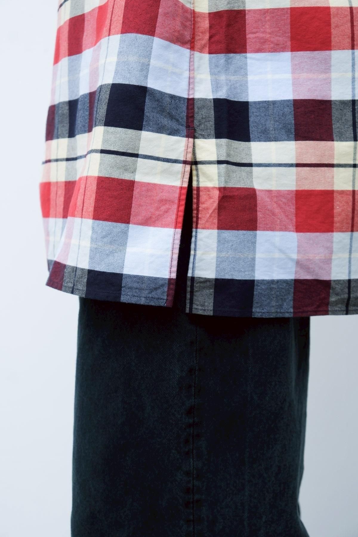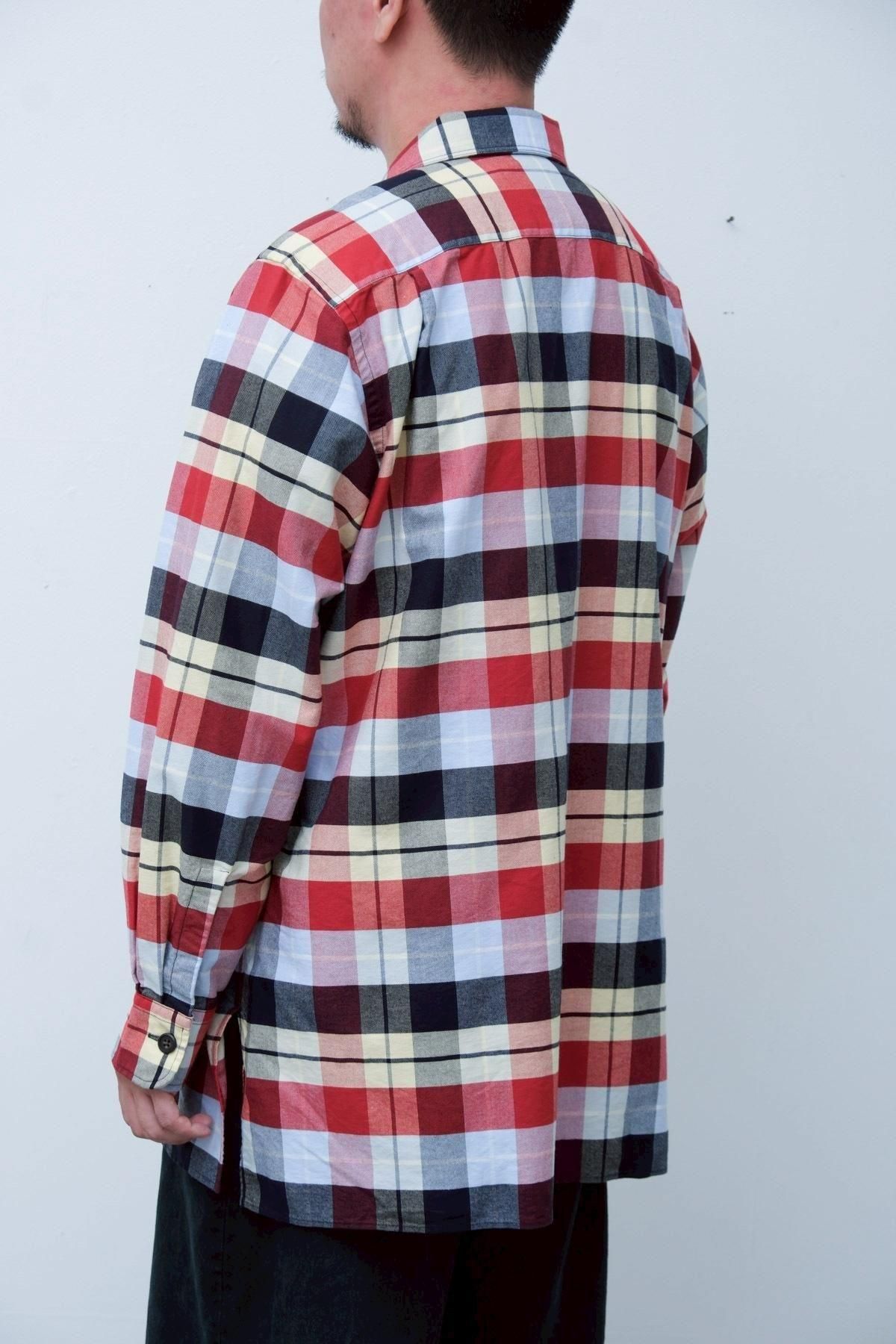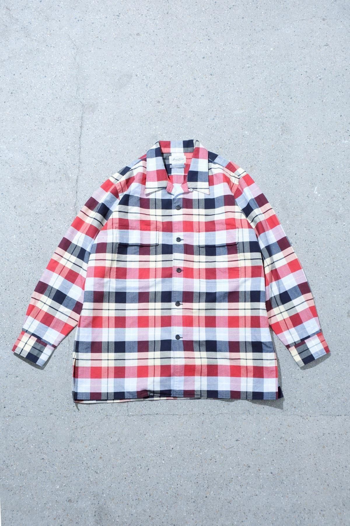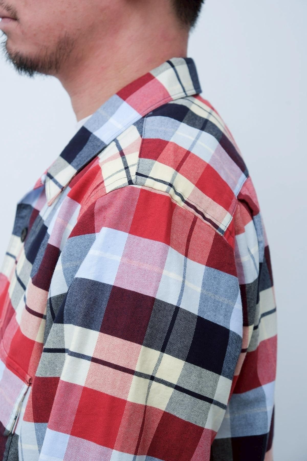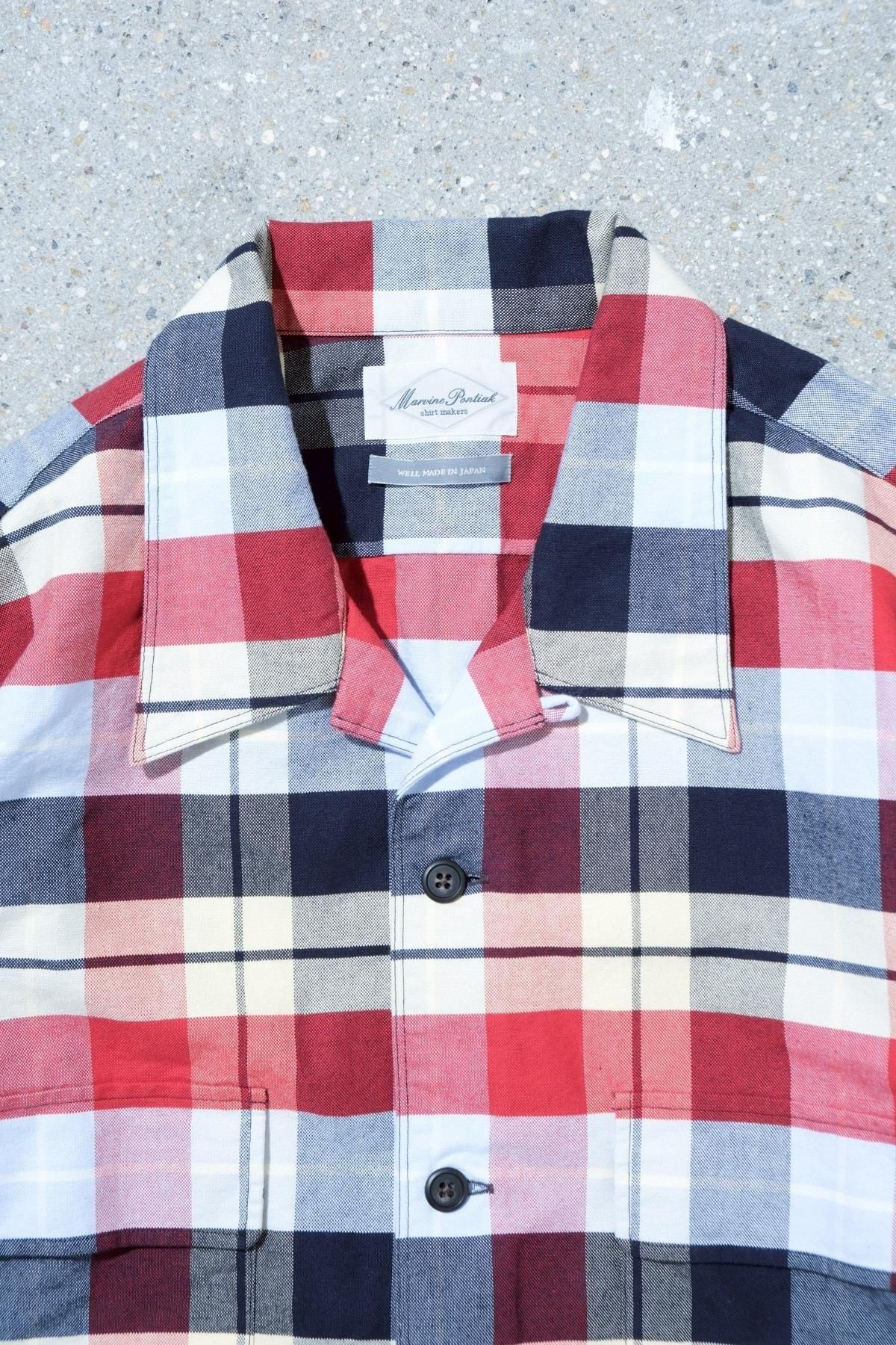 IMA:ZINEの全スタッフが大好きなシャツブランド《Marvine Pontiak Shirt Makers》への今シーズンの別注は、誰もが一度は手にしたことのあるチェックシャツに着目しました。《Marvine Pontiak Shirt Makers》の定番モデル、オープンカラーシャツをベースに、ハリのあるオックスフォード生地を採用。
