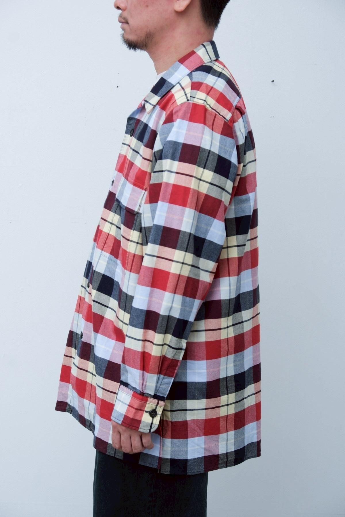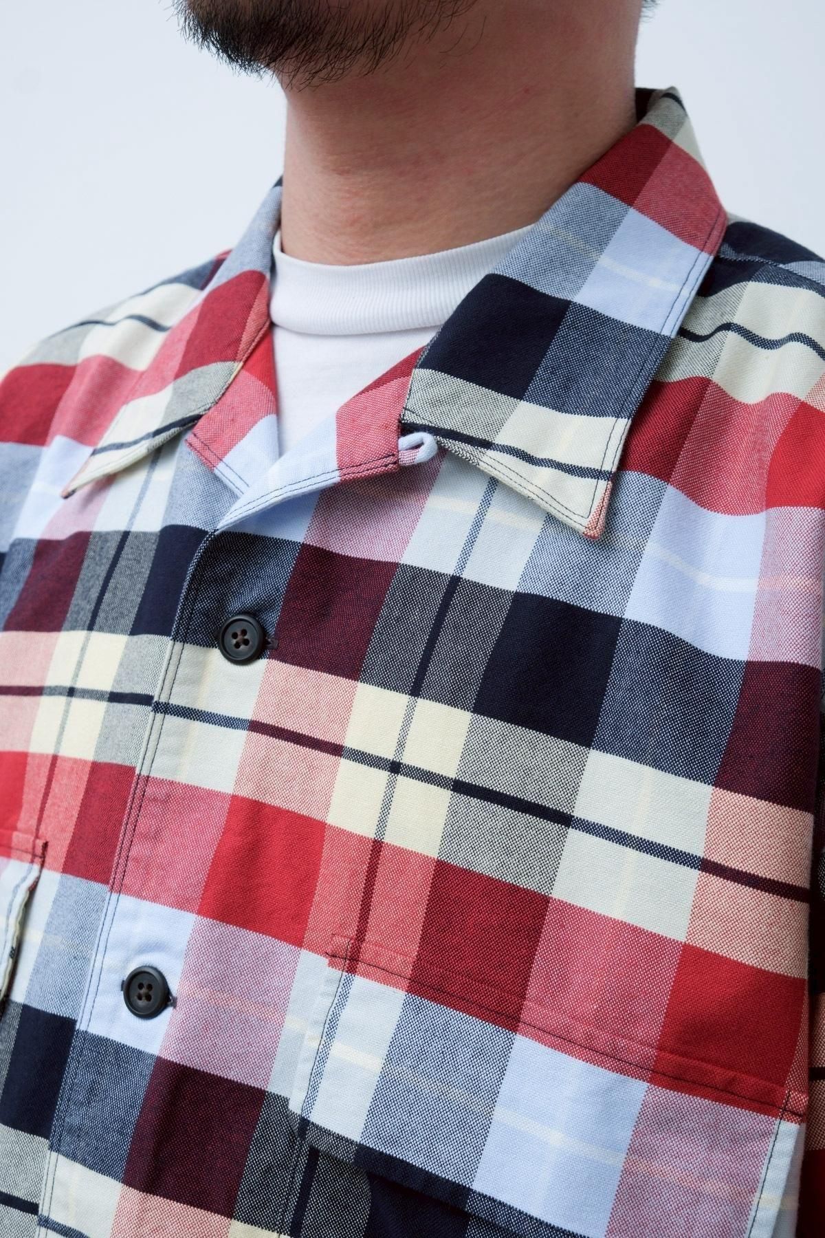 爽やかな配色ながらも“いなたい”表情をみせる、大ぶりのマドラスチェックを纏わせました。縦縞と横縞の交差によってできるチェック柄のように、《Marvine Pontiak Shirt Makers》とIMA:ZINEが交わることでできた最高峰のカジュアルシャツ。コンフォートフィットな1サイズ展開です。