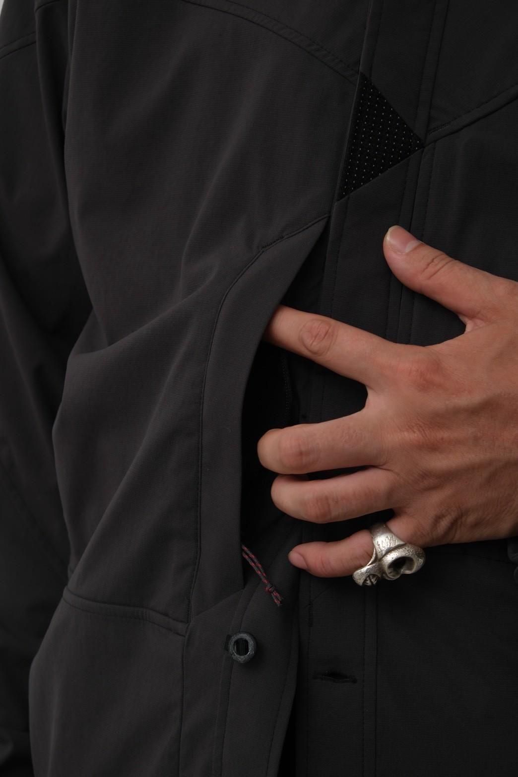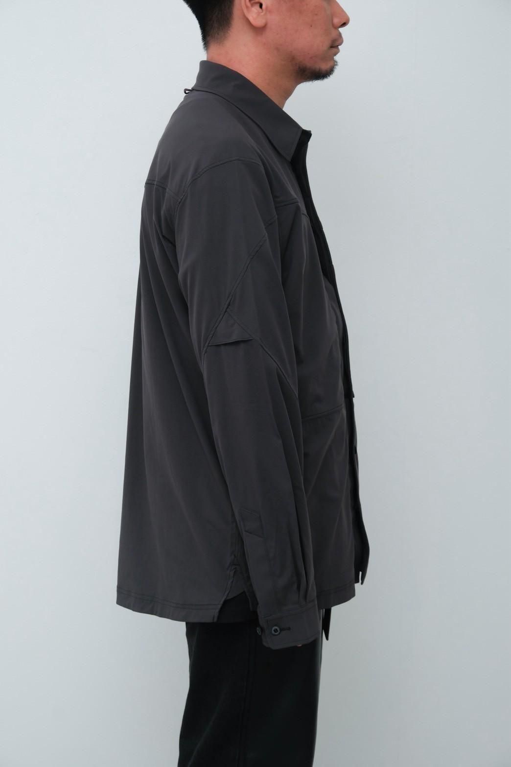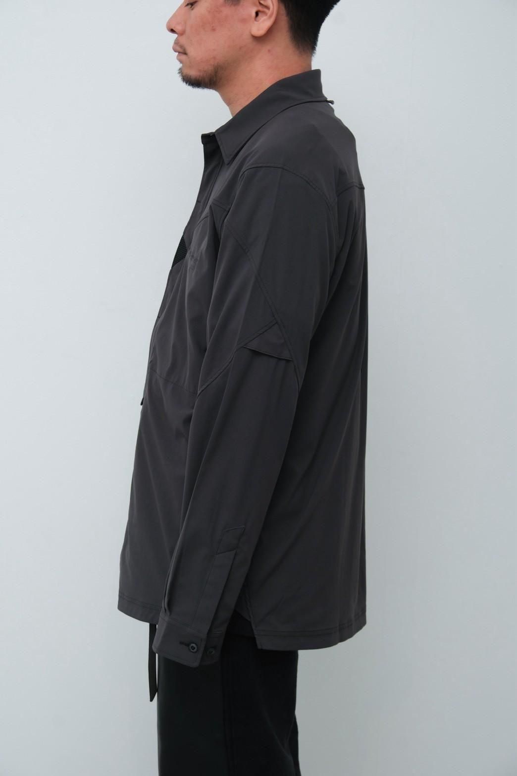 フィールドにおける機能性と、都会的なスタイルを兼ね備えた高機能トレッキングシャツ。襟に風を遮るためのロック機能、袖にはボタン付きのロールアップスリーブ機能など、変わりやすい天候に対応するための機能が盛り込まれており、細部にまでデザイナーのこだわりが詰まっています。このシャツのために改良されたレヴィテンド®リップストップ素材は、速乾性と柔軟性、耐引裂性に優れているだけでなく、生地が体にまとわりつかないように肌の近くで空気の流れを保つ構造に。また非常に高密度に編み込まれた生地は、アンチモスキート構造になっているため、蚊に刺されにくいという特徴も。スリムなシルエットなので、ジャケットスタイルのインナーとしても存在感をもたらせます。