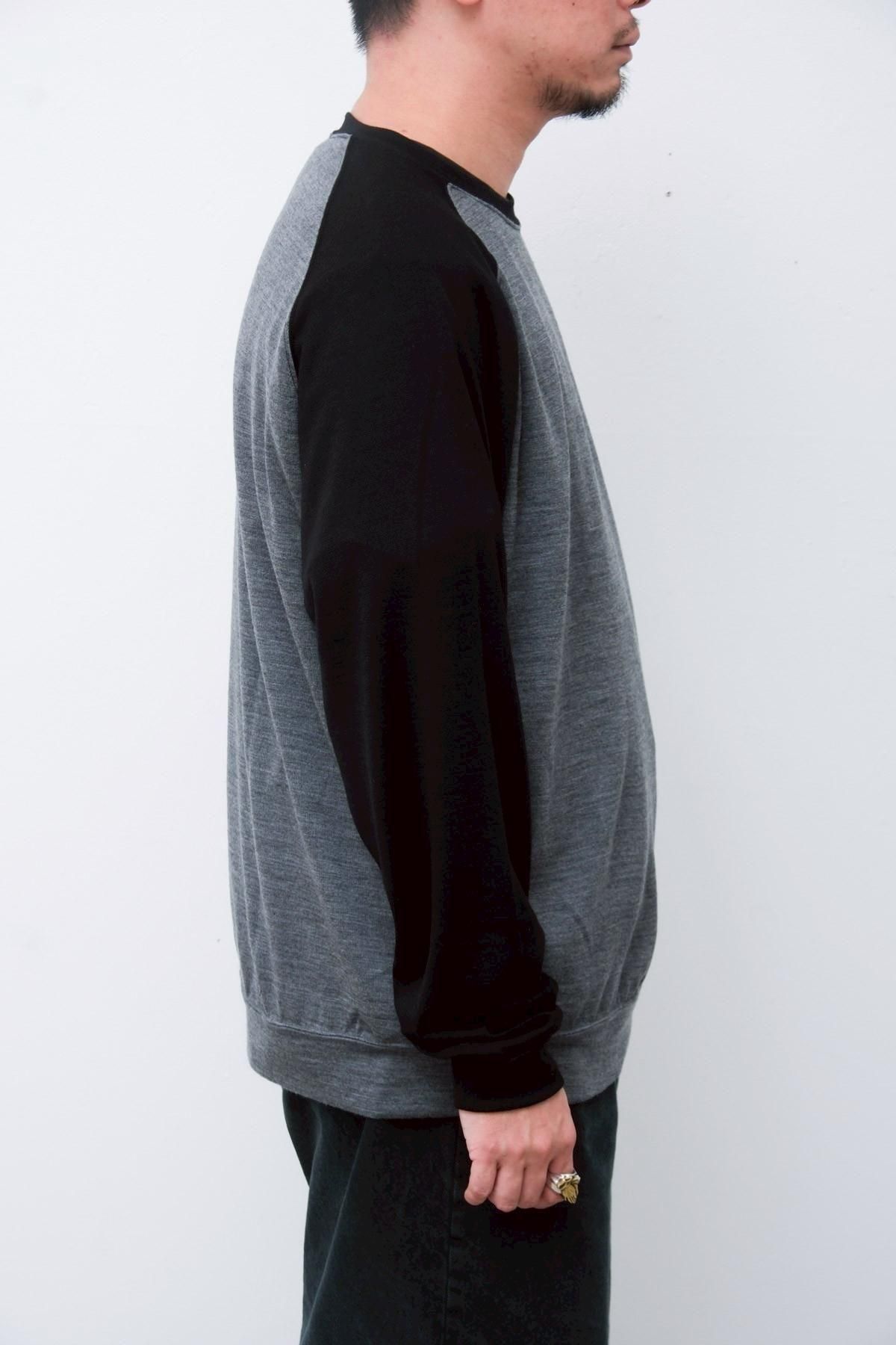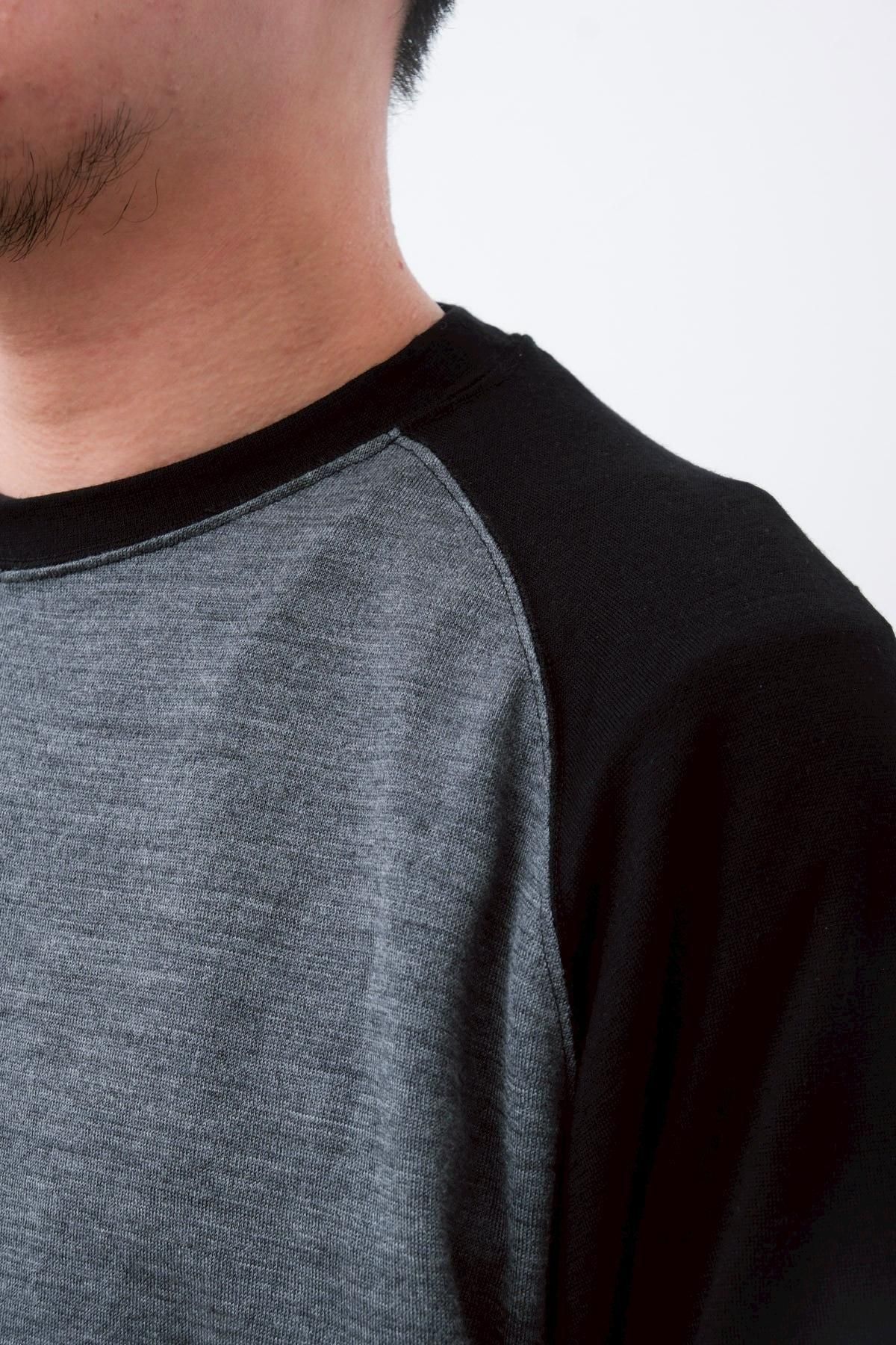 肌に沿う、上質で優しい着心地。合わせる洋服を静かに活かす黒子役であり、一枚でも十分な存在感を併せ持つ、毎日手が伸びてしまうようなベーシックなアイテム。カットソーのスペシャリスト《alvana》監修のもと、上質な生地と美しいシルエットにこだわり製作する《IMA:ZINE ORIGINAL》の新しいカットソーです。素材には、防臭性が高く、しなやかで柔かな肌触りの良いブリティッシュメリノウールを使用したウォッシャブルウール天竺を採用。ウール特有の引っ掛かり感はなく、さらに洗えてイージーケア、とニットに抵抗のある方にもオススメしたい、ロングスリーブT感覚で着られる、ニットを思わせるようなラグランスリーブカットソーに。カラーは、ブラック単色と、グレー×ブラックの2トーンをご用意しました。冬のベーシックなインナーとして、室内でアウターを脱ぐシーンでも、特別な存在感をもたらせてくれます。