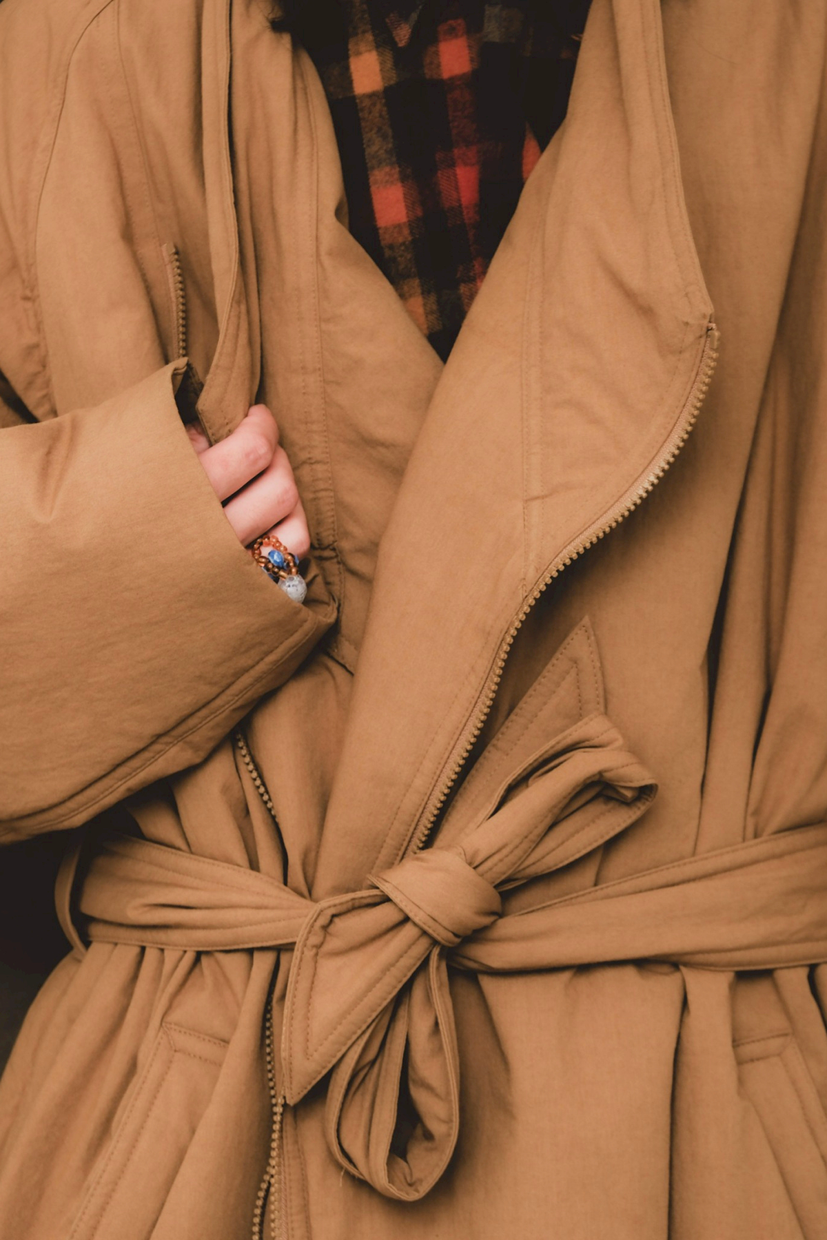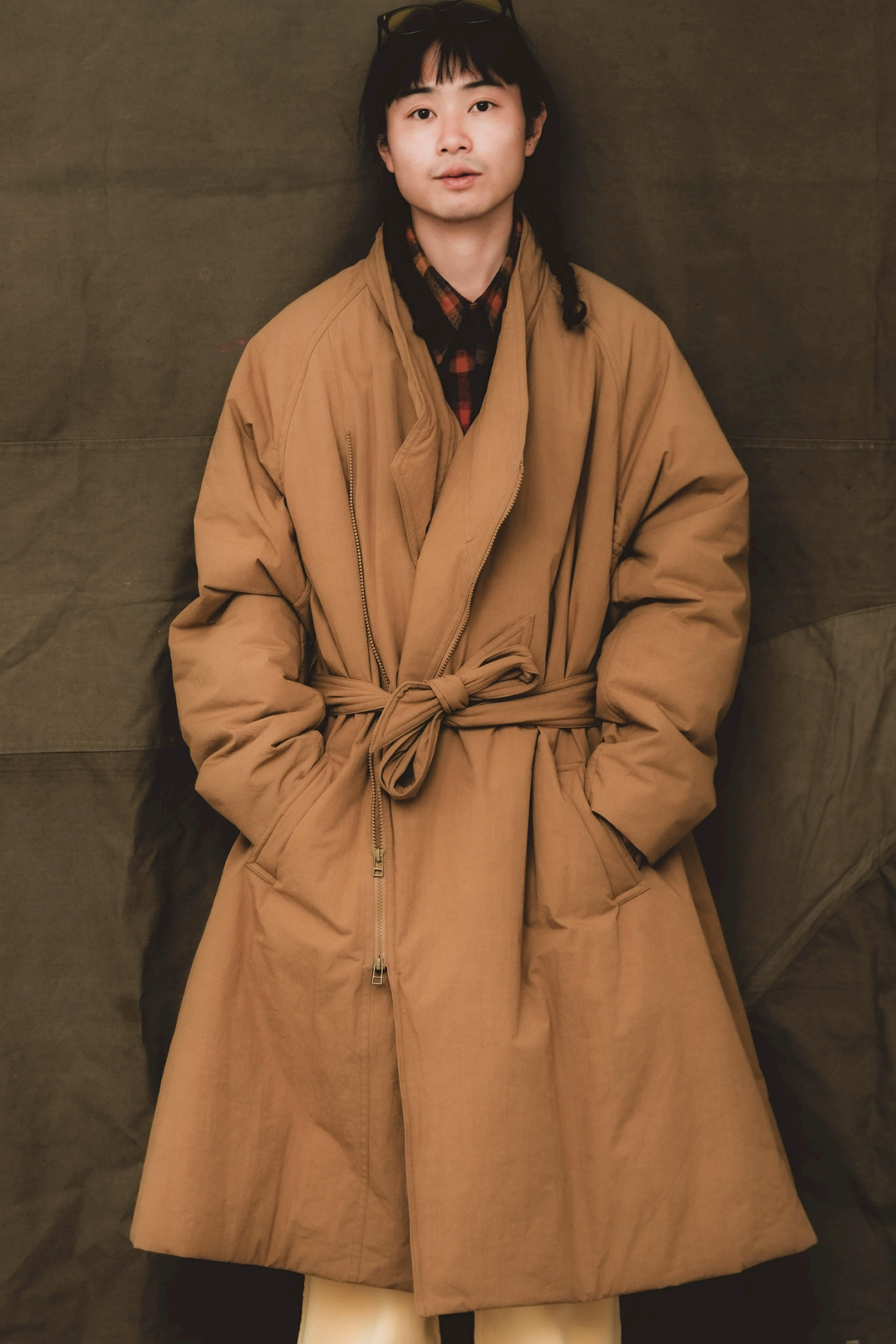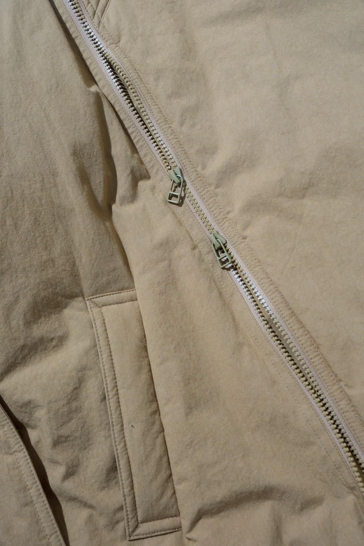 日本の伝統的な着物ををベースに、《whowhat》が現代的に解釈したKIMONO COAT。コットン50%、ナイロン50%を混紡した素材に撥水加工を施した生地を使用。ポリエステルの中綿、ライニングにはキュプラを使用し、風になびくような軽い着用感となっています。