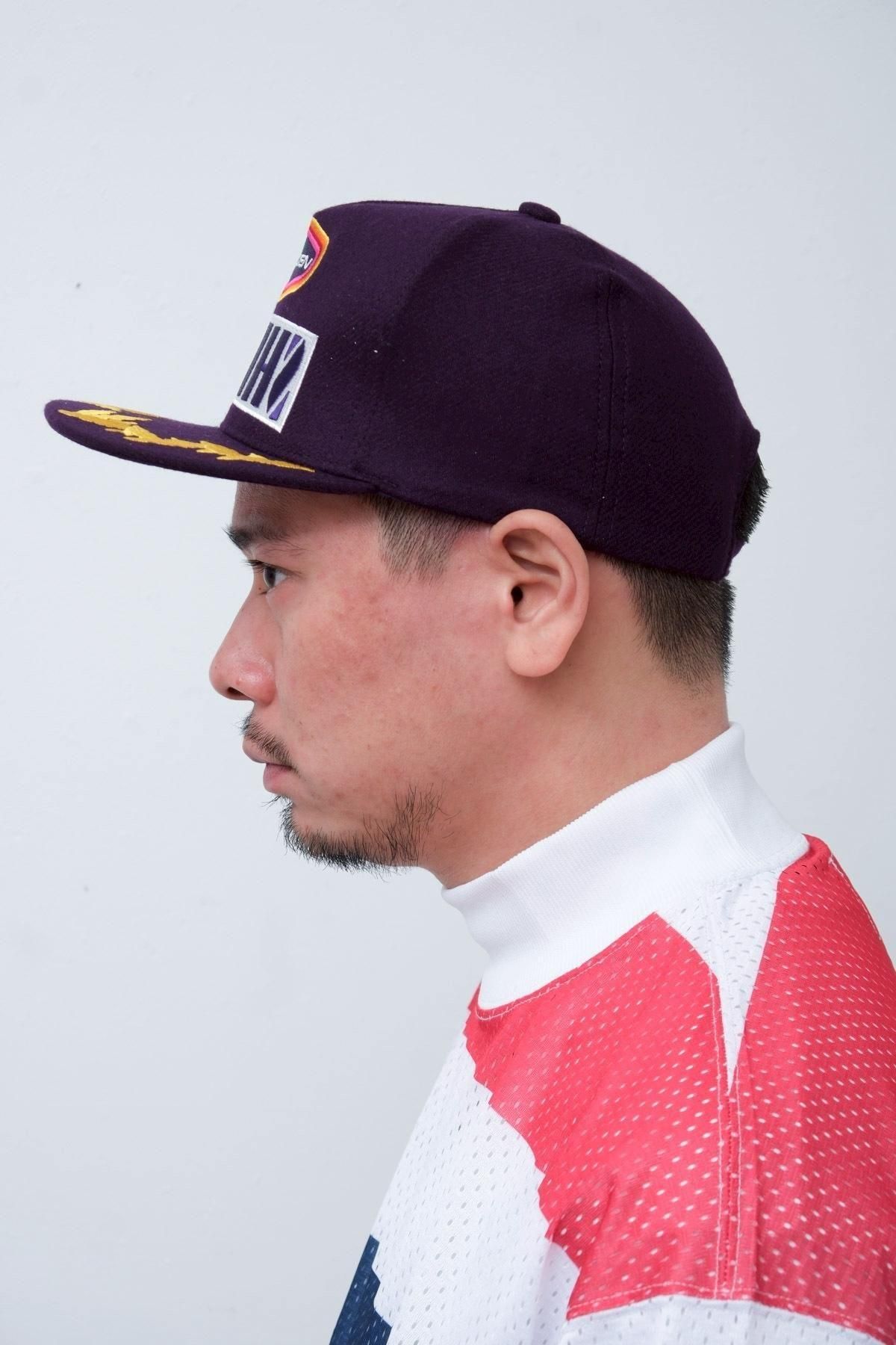 アポロ計画の際、乗組員やスタッフが被っていた帽子が由来のアポロキャップ。ベースボールキャップのように前面が少し平らな形状になっているのが特徴。ツバに刺繍さえたローレルは"栄光と勝利"を意味し、フロントのブランドロゴとのバランスがインパクトあるデザインです。ブラックとパープルの2色展開。