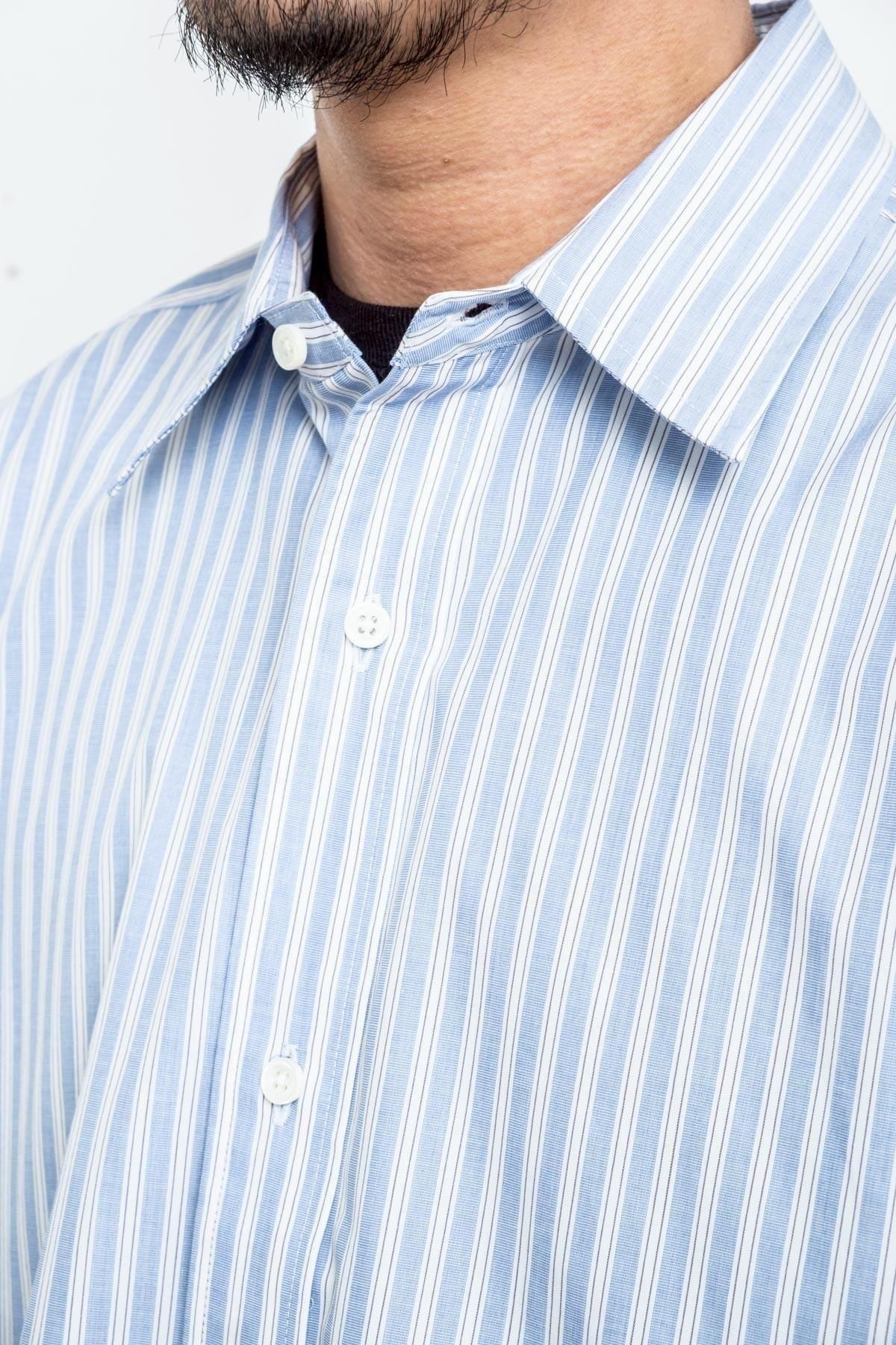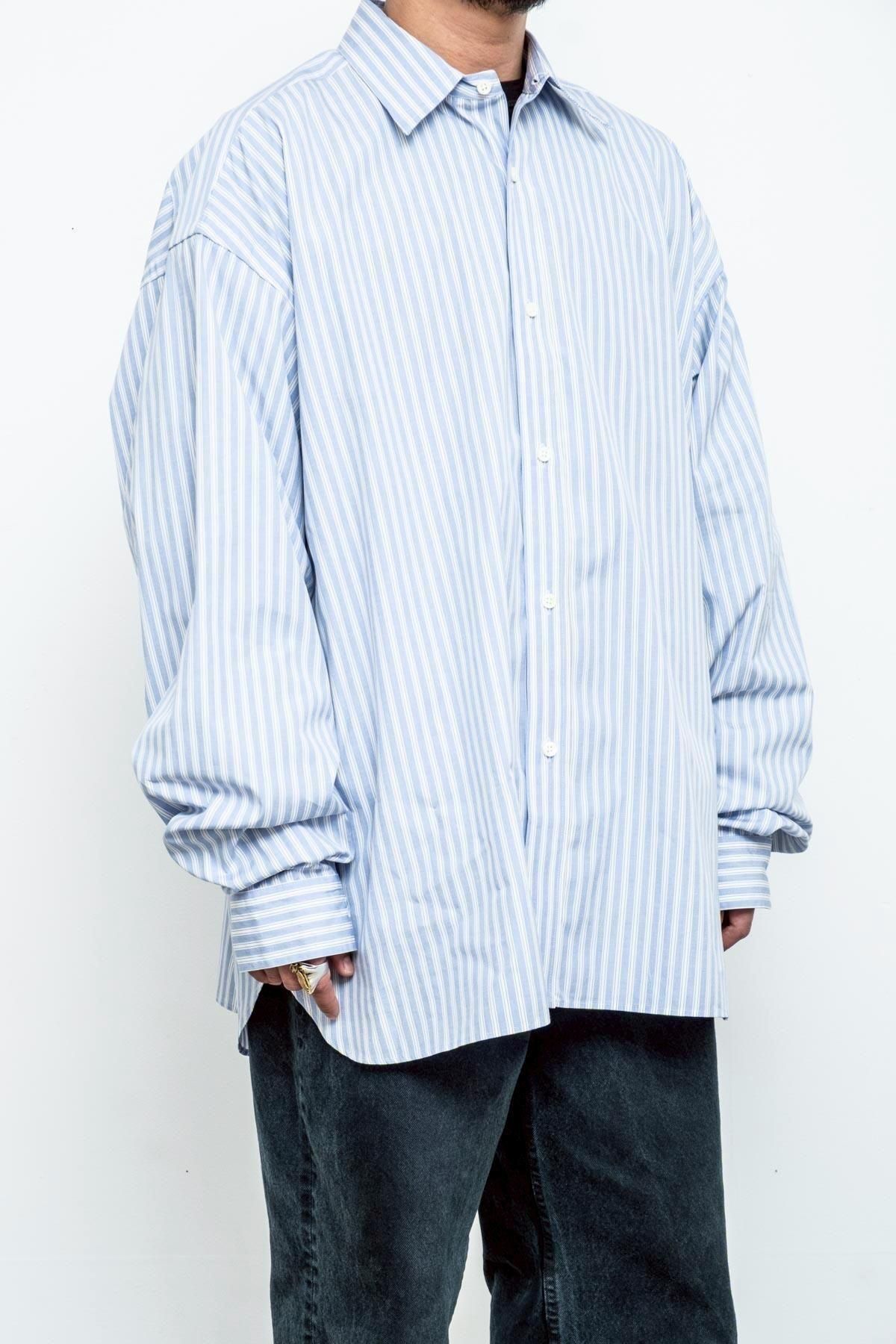 ワイドなシルエットはそのままに、より定番らしい着丈感と裾の仕様に変更したシャツ。ハイカウントの上質なストライプ生地を使用しており適度なハリ感に。トロピカルウールのパンツやジャケットとの相性も抜群で、 オールシーズン着用いただけます。