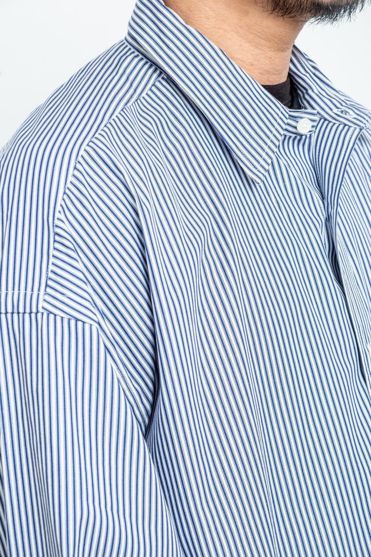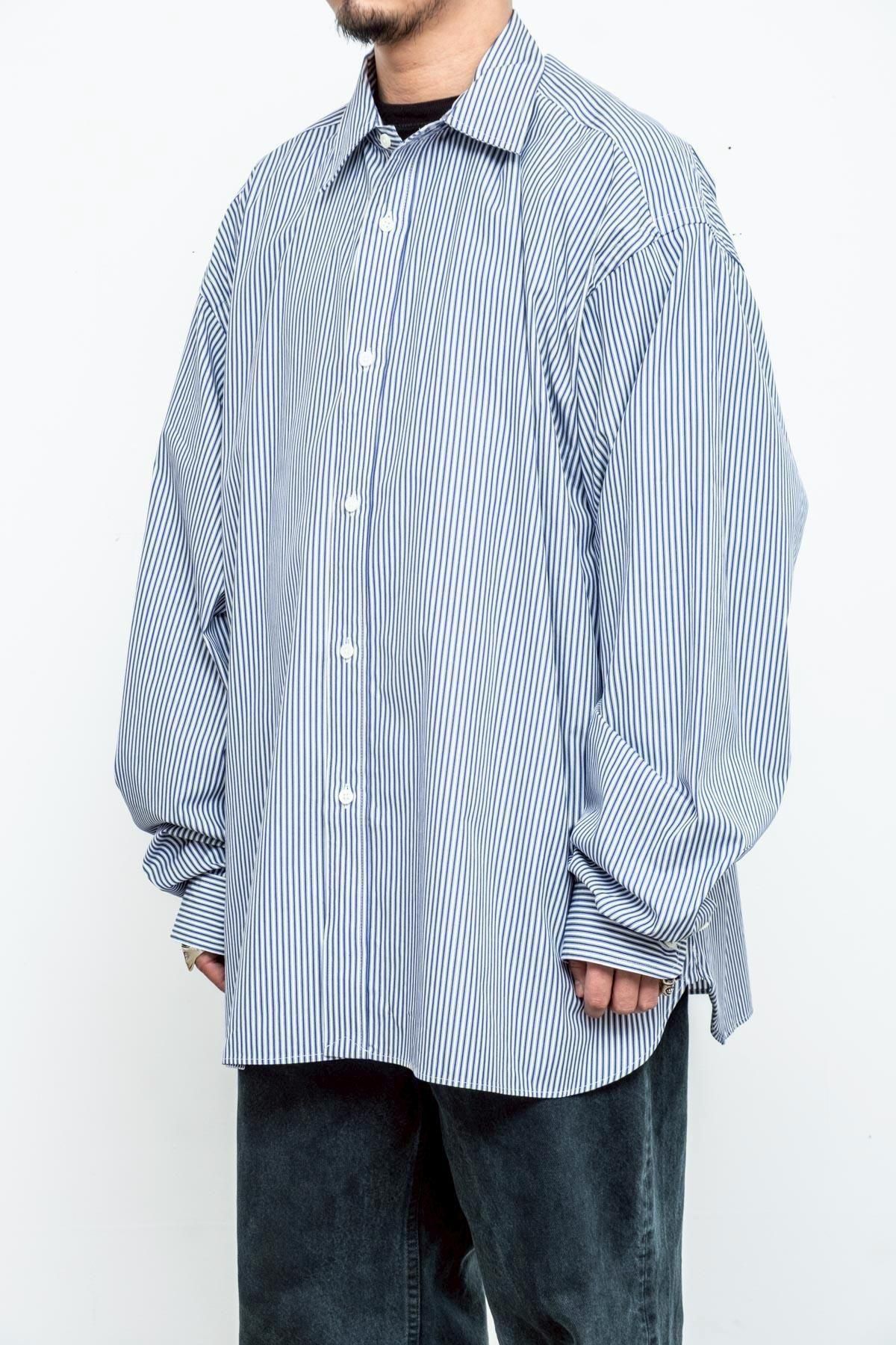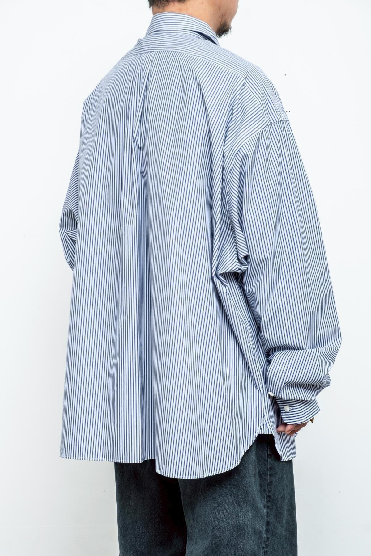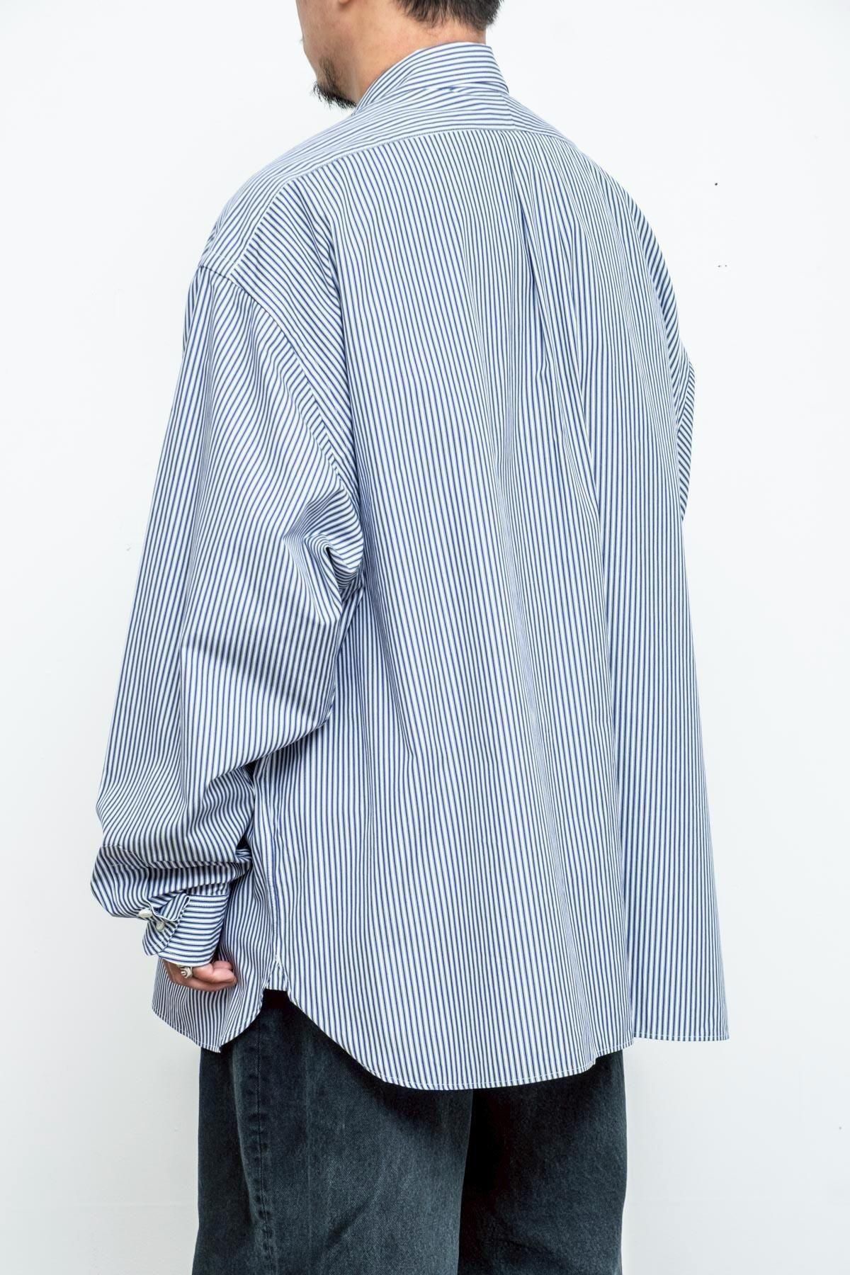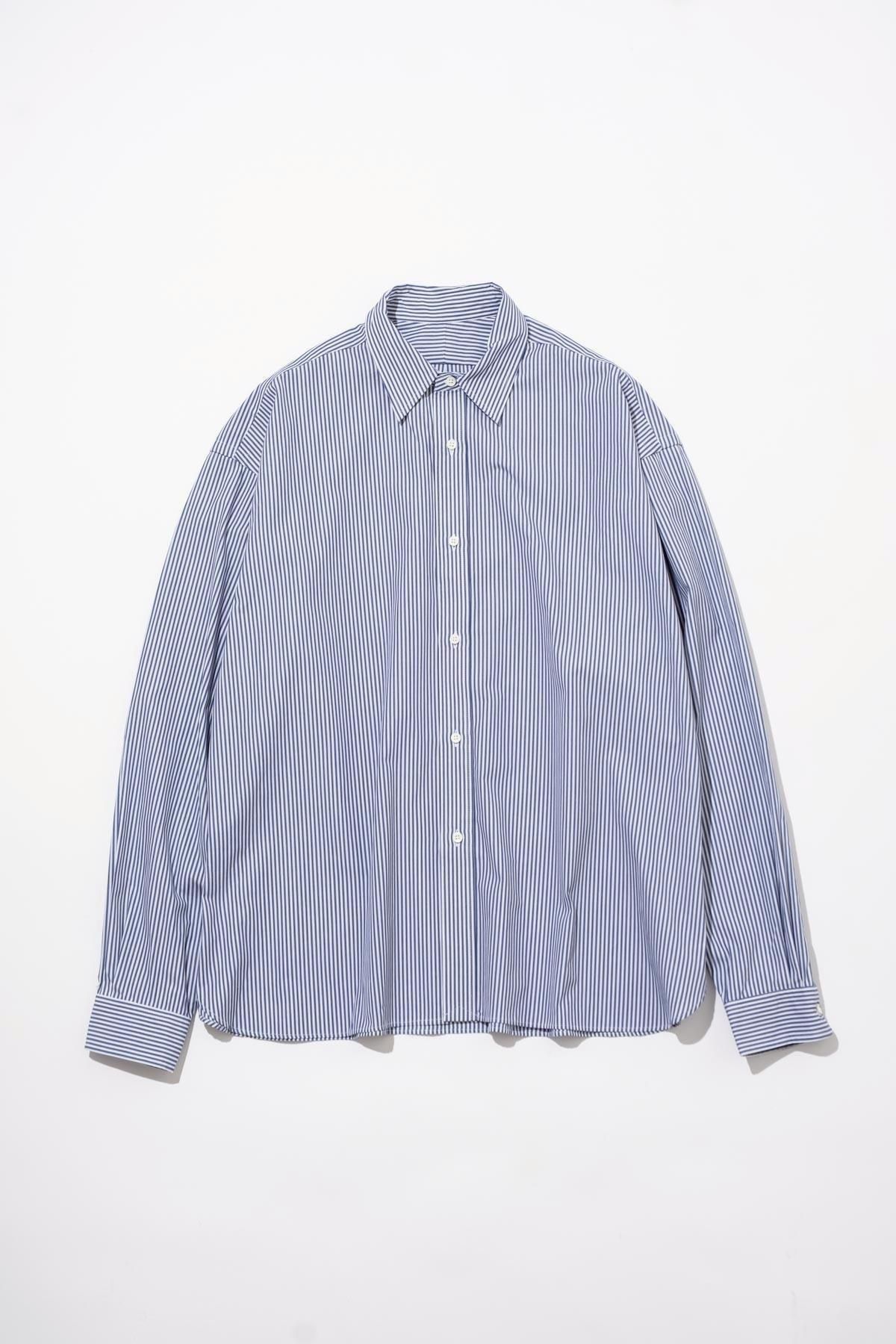 ワイドなシルエットはそのままに、より定番らしい着丈感と裾の仕様に変更したシャツ。ハイカウントの上質なストライプ生地を使用しており適度なハリ感に。トロピカルウールのパンツやジャケットとの相性も抜群で、 オールシーズン着用いただけます。