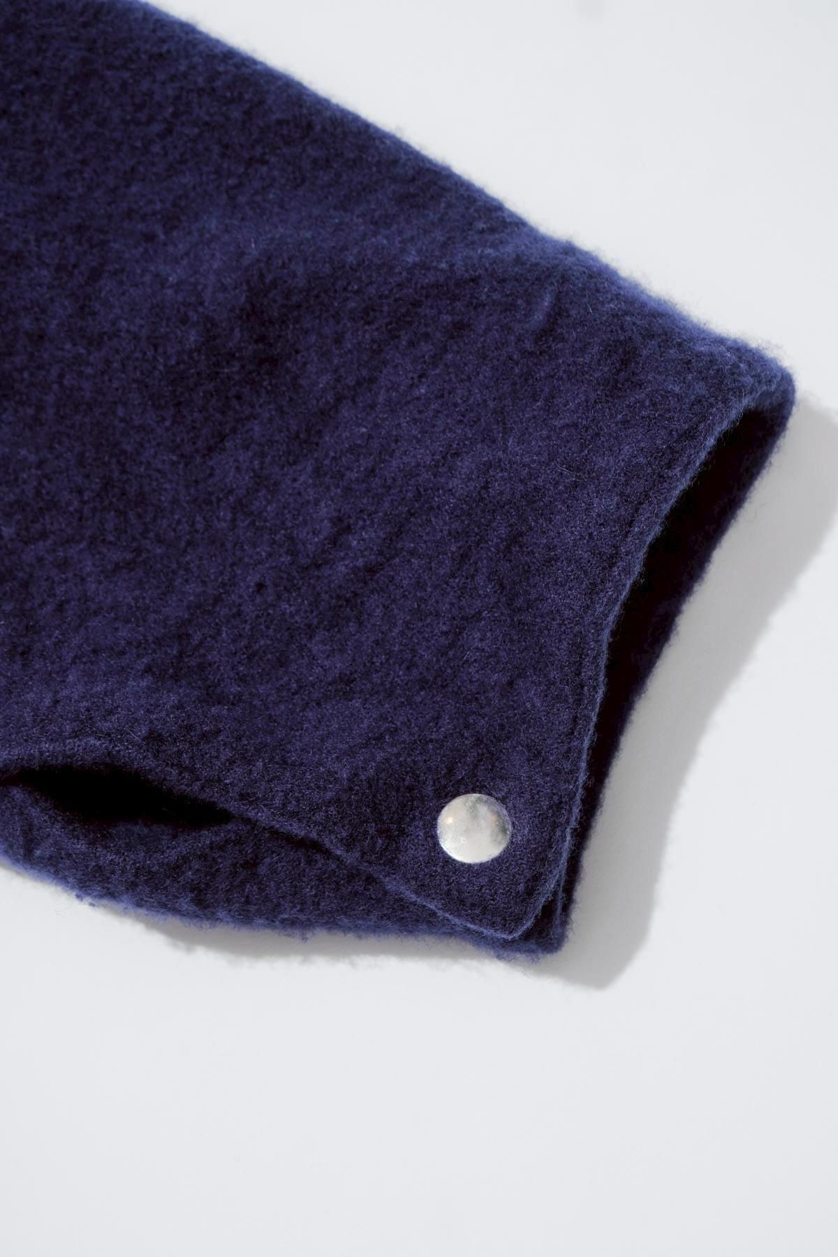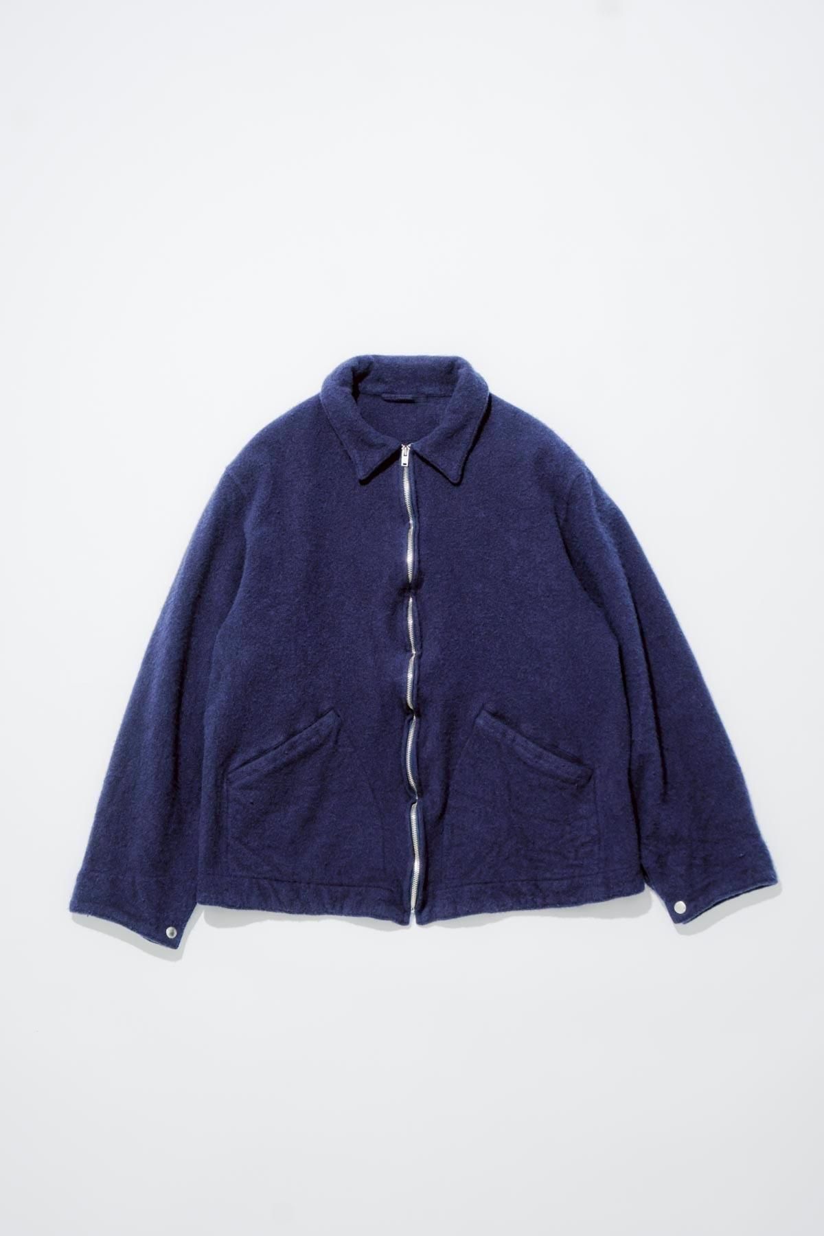 ふっくらと柔らかなウール素材を使用した縮絨ウールジップショートジャケット。製品の状態で強縮絨をかけることでフロントジップに歪みを持たせたデザインに。今シーズンは、美しい色味のパープルブルーが新たにラインナップしました。袖口と裾はスナップボタンでシルエットの調節が可能。ミニマルな見た目と、縮絨ウールの独特の表情が魅力です。