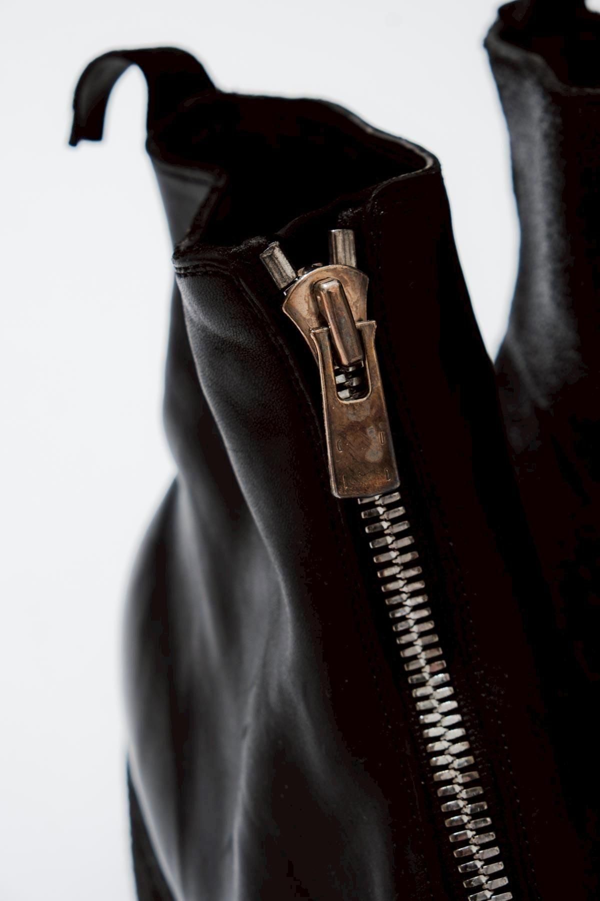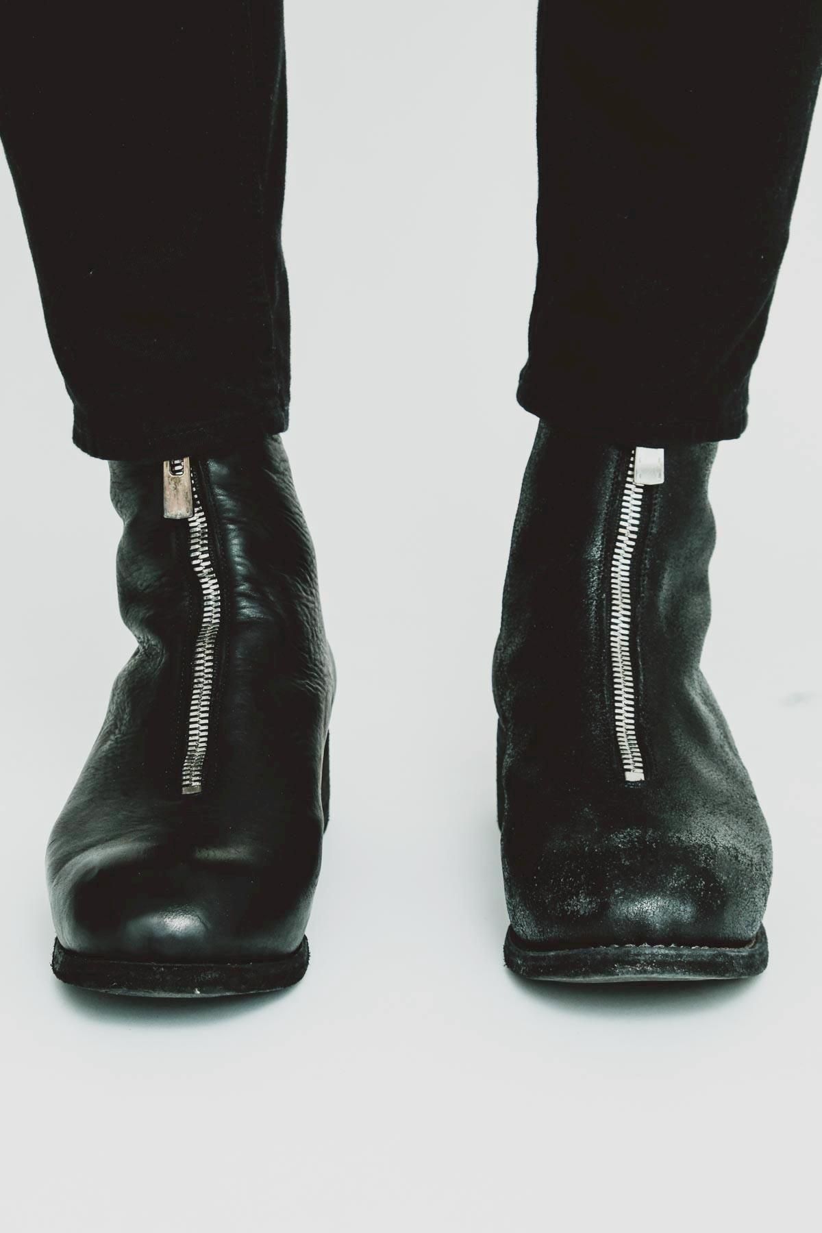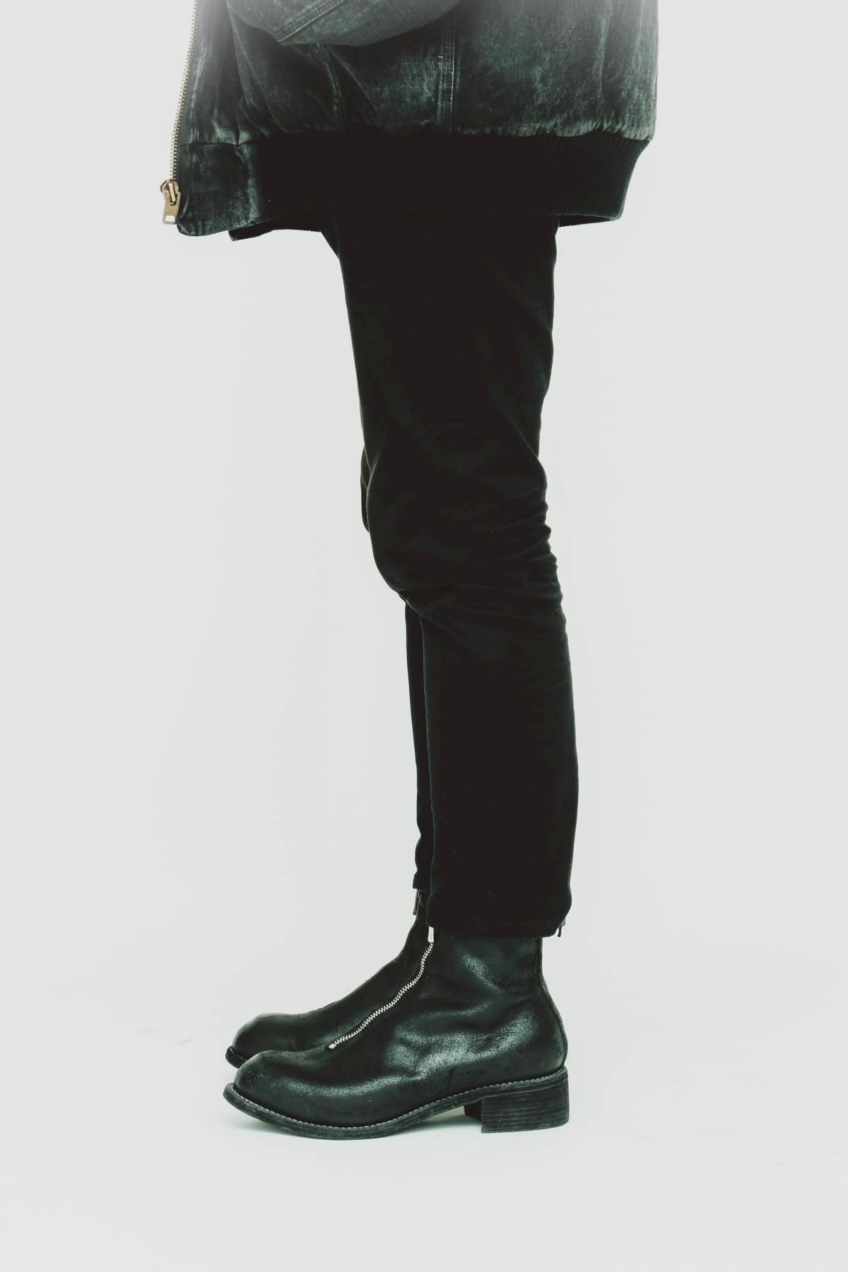 イタリアの名門レザーブランド《GUIDI》とIMA:ZINEによる初となるエディトリアルプロジェクト、“PL1 IZ HORSE COATER AND FULL GRAIN”。本エディトリアルプロジェクトは、象徴的なフロントジップ、シャープなシャフトが特徴的なデザインのモデル“PL1”をベースに、《GUIDI》の歴史上初めてとなるアシンメトリー仕様に。右足はホースレザーが持つしなやかさやラインが際立つように美しい表情に仕上げ、“現在”を表現。左足は、ホースレザーにコーティングを施したのちにタンブラーをかけることであえてクラックさせ、さらに手作業で部分的にコーティングを剥がすことで、“確かな過去”を表現しています。このレザーブーツには、過去と現在を踏みしめながら、未来へ歩み出す。異なる時間軸を纏った2本の足で踏み出すことで、そのひとが積み重ねてきた歴史の軌跡、そしてこれから歩む未来の方向性を示しています。美しさと力強さ。IMA:ZINEが大切にしてきたテーマを宿したスペシャルなエディトリアルプロジェクト。本体とは別に、ビブラム社のハーフラバーとヒールラバーが付属いたします。